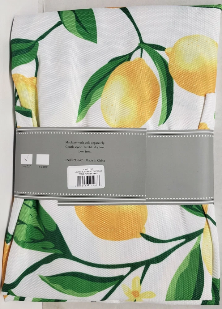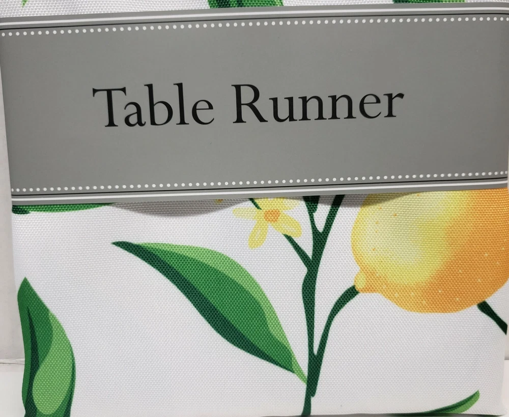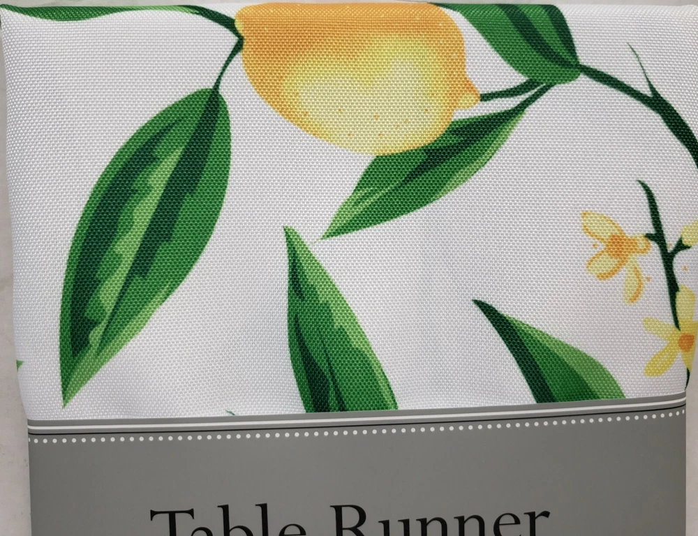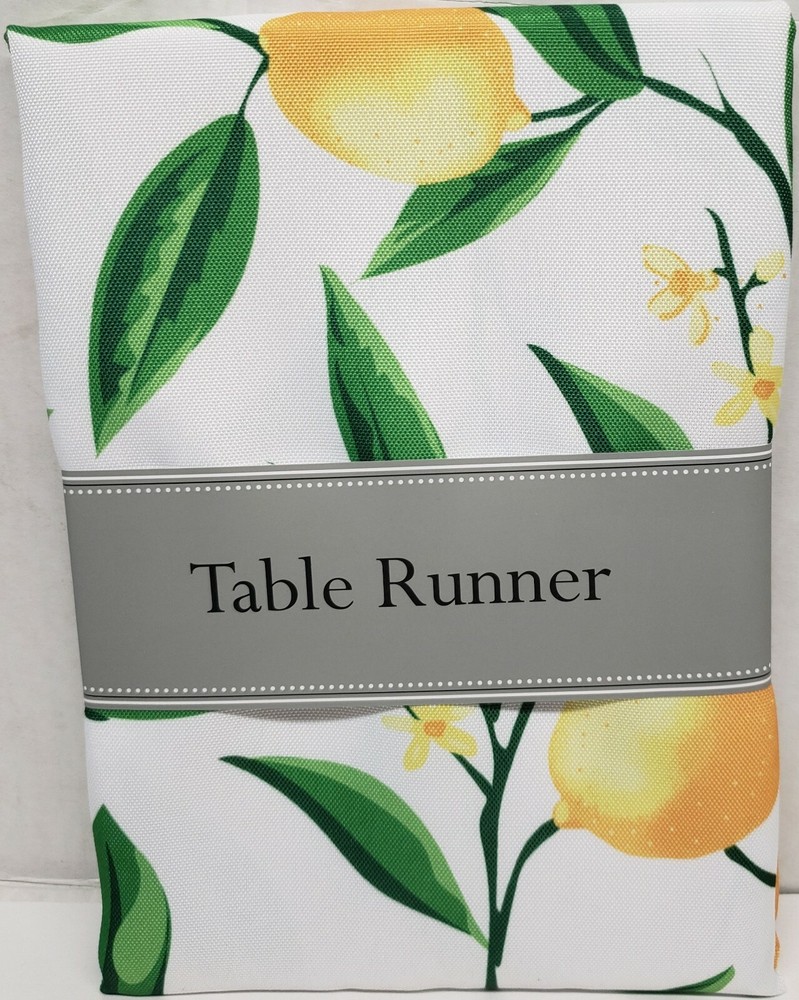 I'm selling 1 Fabric Printed Indoor/Outdoor Table Runner, (approx. 14" x 72") CITRUS FRUITS, LEMONS BLISS as seen on pictures. Colorful, beautifully printed lemons on a fresh, white background. This lemon print is as bright as summer; make your table décor feel warm and fun for the season. Dimensions - 14"H x 72"W x 0.25"D Enhance your home- features a classic design for an inviting look Spill proof table runner Polyester Machine Wash Cold Separately, Gentle Cycle, Tumble Dry Low, Low Iron Made in India by Design Imports . Brand new in the original packaging. Machine Wash. Perfect for Outdoor use. Please check out my other listings, and if you buy multiple items, please contact me and I will find out how I can combine your shipping I ship to USA only (or internationally using Global Shipping) .