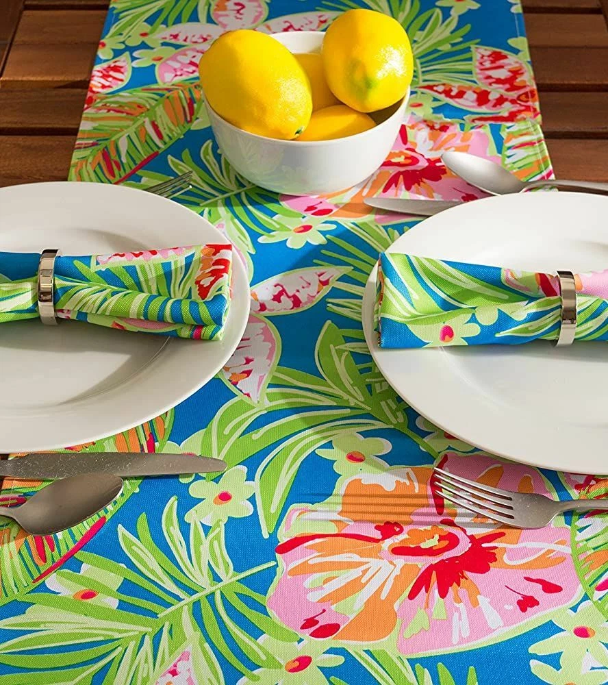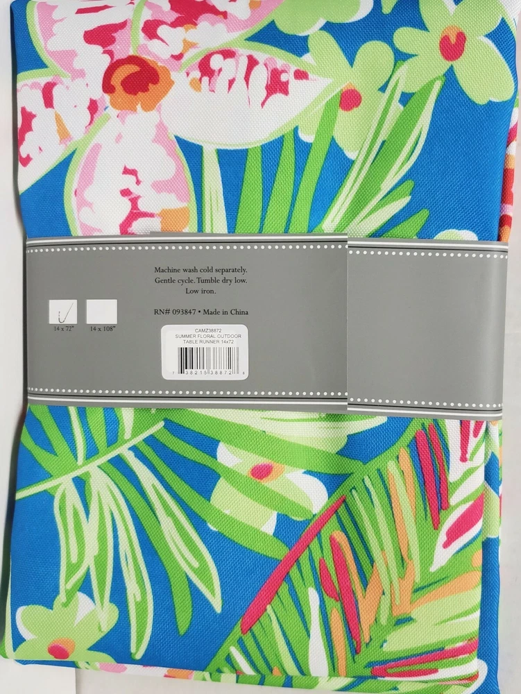I'm selling 1 Fabric Printed Indoor/Outdoor Table Runner, (approx. 14" x 72") SUMMER FLORAL, FLOWERS & LEAVES as seen on pictures. Fashioned in timeless designs, this spill and stain resistant patio table runner is perfect for outdoor use! Runners provide a great place to set down platters to prevent spills and scratches on your tabletop while adding style and flair. Dimensions - 14"H x 72"W x 0.25"D Enhance your home- features a classic design for an inviting look Spill proof table runner Polyester Machine Wash Cold Separately, Gentle Cycle, Tumble Dry Low, Low Iron Made in India by Design Imports . Brand new in the original packaging. Machine Wash. Perfect for Outdoor use. Please check out my other listings, and if you buy multiple items, please contact me and I will find out how I can combine your shipping I ship to USA only (or internationally using Global Shipping) .