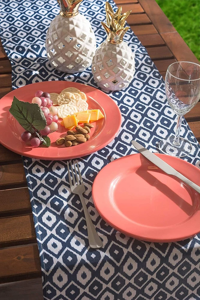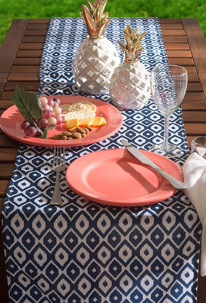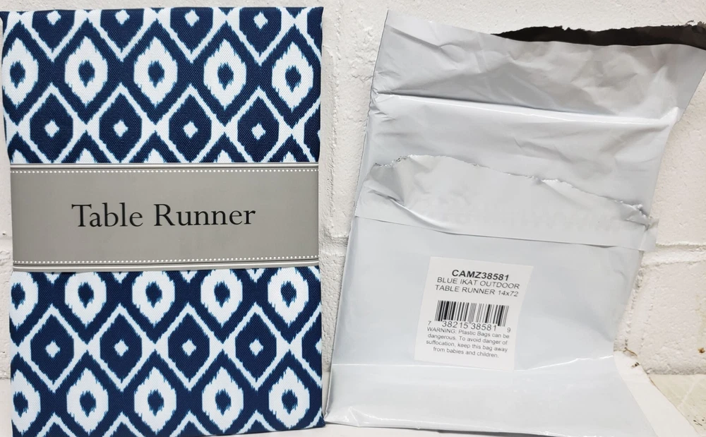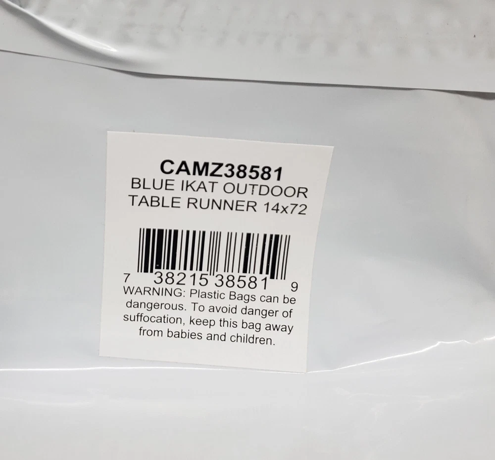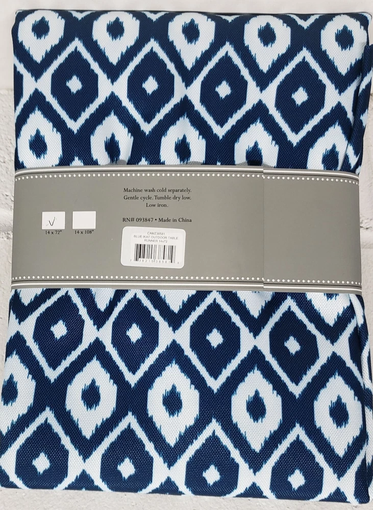 I'm selling 1 Fabric Indoor/Outdoor Table Runner 14" x 72", BLUE ICAT ON WHITE as seen on pictures. Design Imports 100% polyester table runners are perfect for outdoor use. The runner is water proof & stain resistant. Dimensions - 14"H x 72"W x 0.25"D Enhance your home- features a classic design for an inviting look Polyester Machine Wash Cold Separately, Gentle Cycle, Tumble Dry Low, Low Iron Material can be wiped clean or machine washed on gentle cycle, tumble dry low and Low iron if needed; use again and again Made in China by Design Imports . Brand new in the original packaging. Machine Wash. Please check out my other listings, and if you buy multiple items, please contact me and I will find out how I can combine your shipping I ship to USA only (or internationally using Global Shipping) .