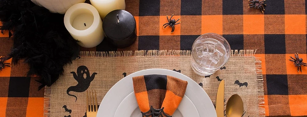 I'm selling 1 Fabric Indoor/Outdoor Table Runner 14" x 72", HALLOWEEN, ORANGE & BLACK PLAID BUFFALO CHECK as seen on pictures. Design Imports 100% polyester table runners are perfect for outdoor use. Dimensions - 14"H x 72"W x 0.25"D Enhance your home- features a classic design for an inviting look Polyester Machine Wash Cold Separately, Gentle Cycle, Tumble Dry Low, Low Iron Made in India by Design Imports . Brand new in the original packaging. Machine Wash. Please check out my other listings, and if you buy multiple items, please contact me and I will find out how I can combine your shipping I ship to USA only (or internationally using Global Shipping) .