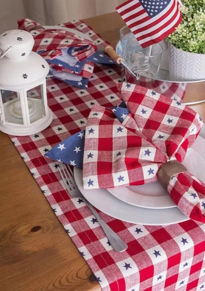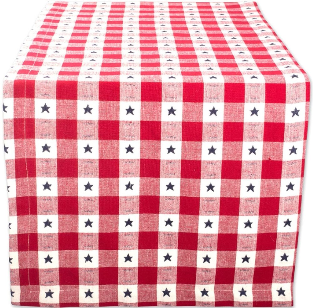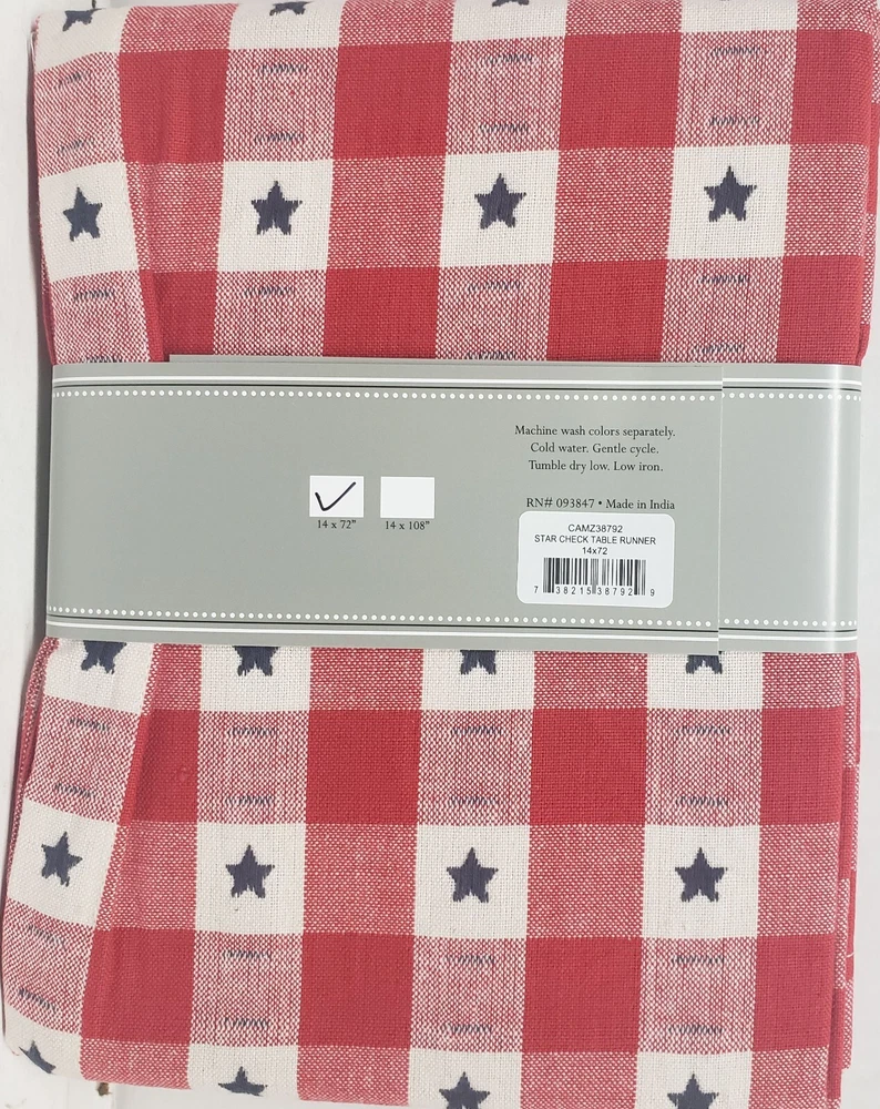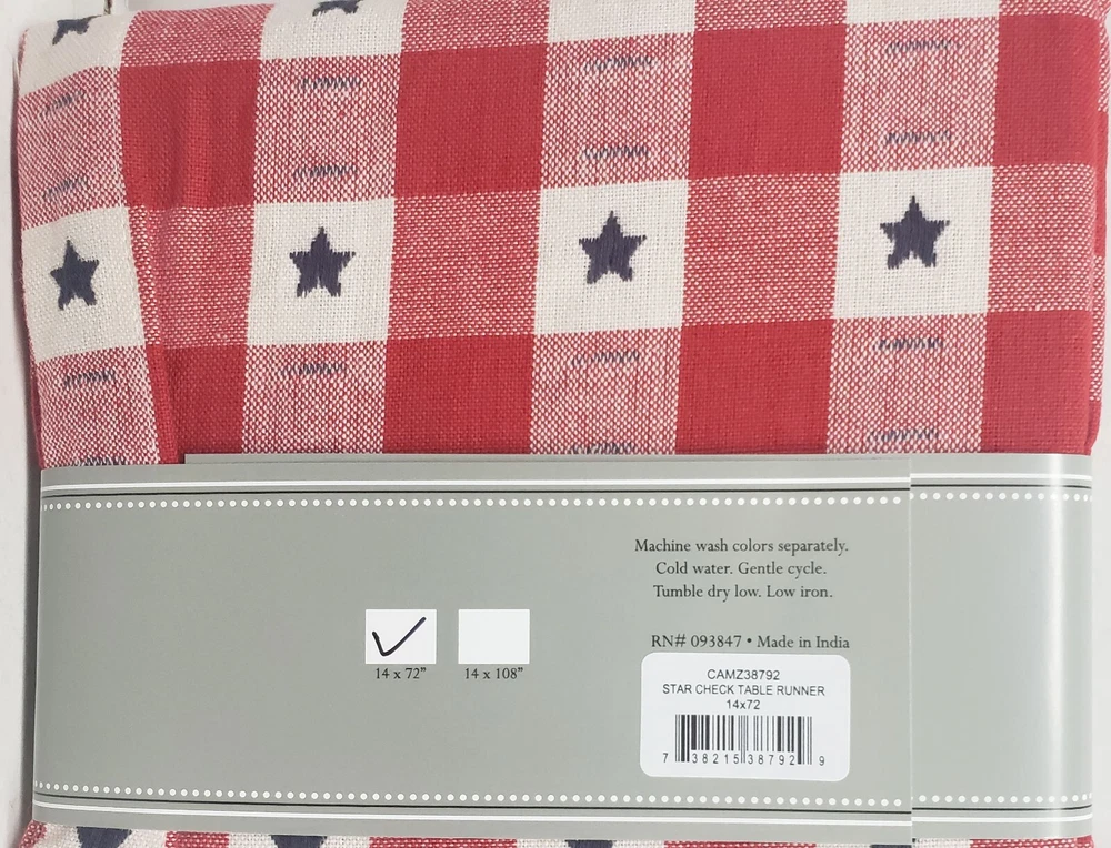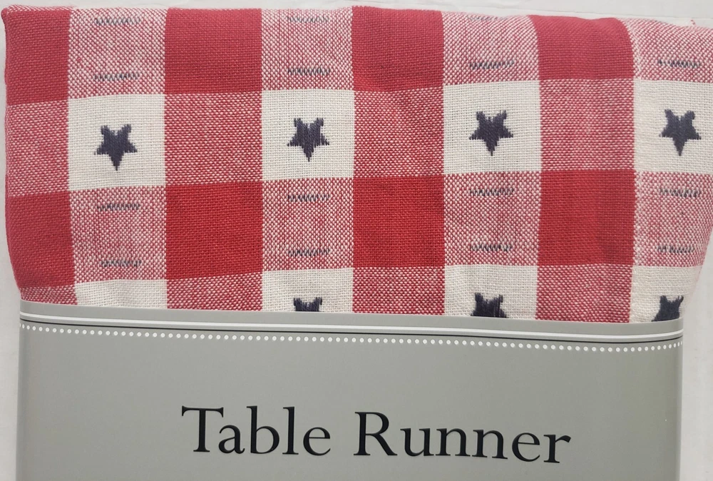 I'm selling 1 Fabric Indoor/Outdoor Table Runner 14" x 72", PATRIOTIC, USA FLAG COLORS STAR CHECK as seen on pictures. Design Imports 100% polyester table runners are perfect for outdoor use. Dimensions - 14"H x 72"W x 0.25"D Enhance your home- features a classic design for an inviting look Polyester Machine Wash Cold Separately, Gentle Cycle, Tumble Dry Low, Low Iron Made in India by Design Imports . Brand new in the original packaging. Machine Wash. Please check out my other listings, and if you buy multiple items, please contact me and I will find out how I can combine your shipping I ship to USA only (or internationally using Global Shipping) .