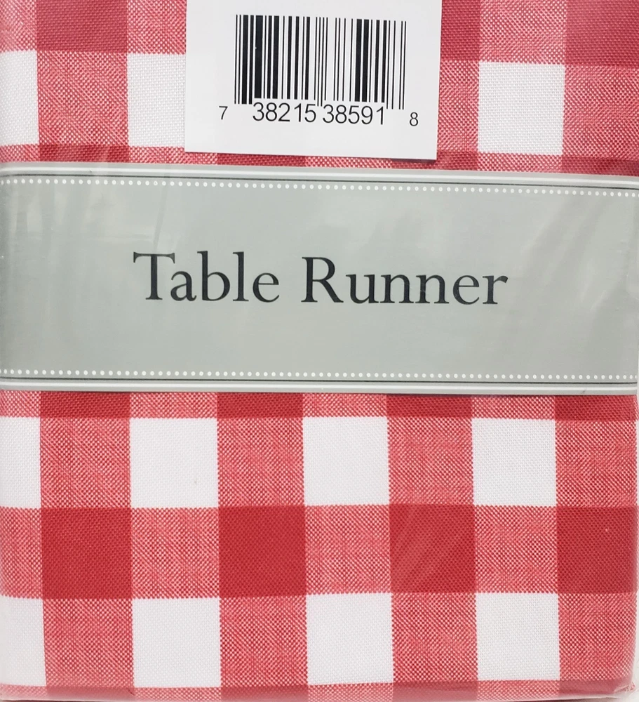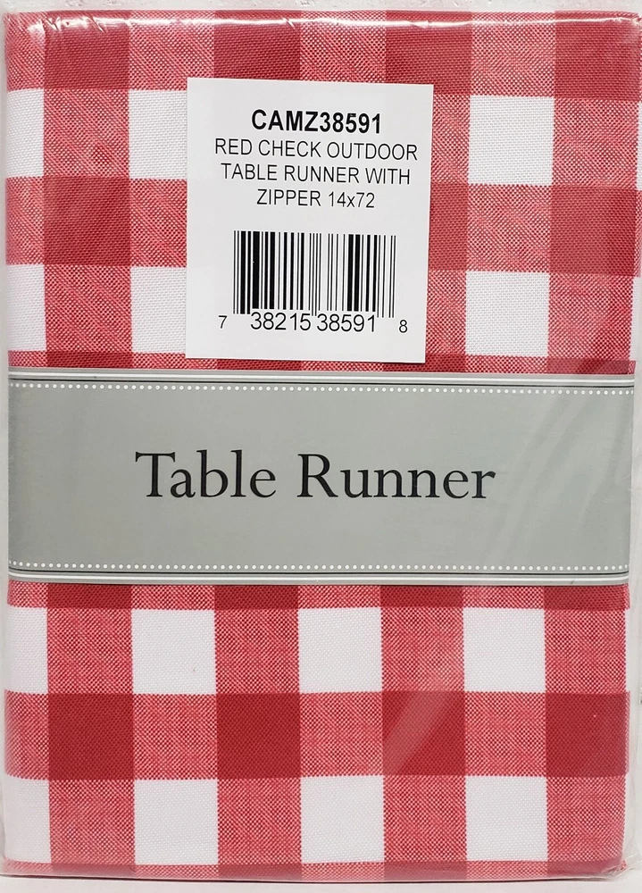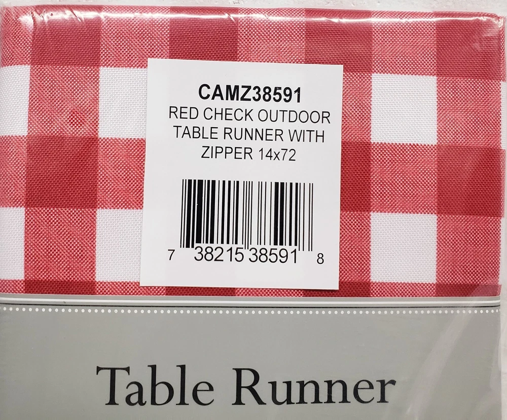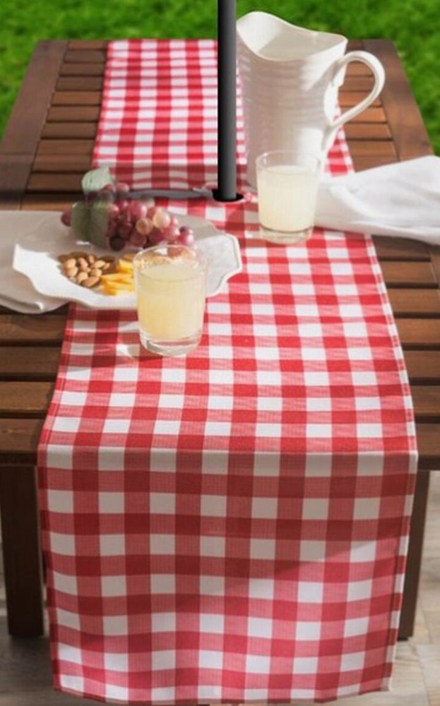 I'm selling 1 Fabric Zippered Outdoor Table Runner 14" x 72", RED & WHITE BUFFALO CHECK as seen on pictures. This table runner is 100% polyester and measures 14"x72” . Perfect for indoor or outdoor use in the spring and summer months. The waterproof and stain resistant polyester material makes for simple cleanup. The checkered design offers a crisp and clean backdrop for your outdoor dining pleasure. This wonderful outdoor table runner zips on and off easily around patio table umbrellas for easy meals outside with shade. Great for BBQ's, parties, summer gatherings, dinner with the family. Machine wash cold separately. Gentle cycle. Tumble dry low. Low iron Design Imports 100% polyester zippered table runners are perfect for outdoor use. These wonderful outdoor table runner zip on and off easily around patio table umbrella The waterproof and stain resistant polyester material makes for simple cleanup. I may have the same design table runner in larger size 14" x 108" Dimensions - 14"H x 72"W x 0.25"D For your table - DII spill proof zippered table runner Enhance your home- features a classic design for an inviting look Zip on and off easily around patio table umbrellas for easy meals outside with shad Item # CAMZ 38591 Made in India by Design Imports. Brand new in the original packaging. Please check out my other listings, and if you buy multiple items, please contact me and I will find out how I can combine your shipping I ship to USA only (or internationally using Global Shipping).