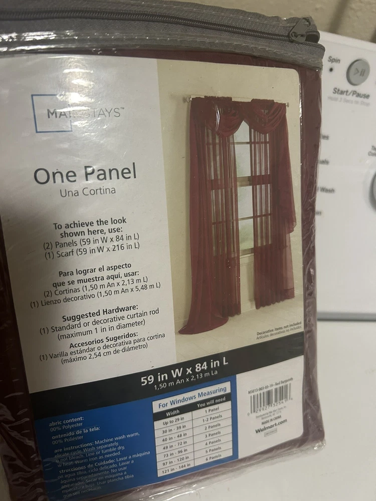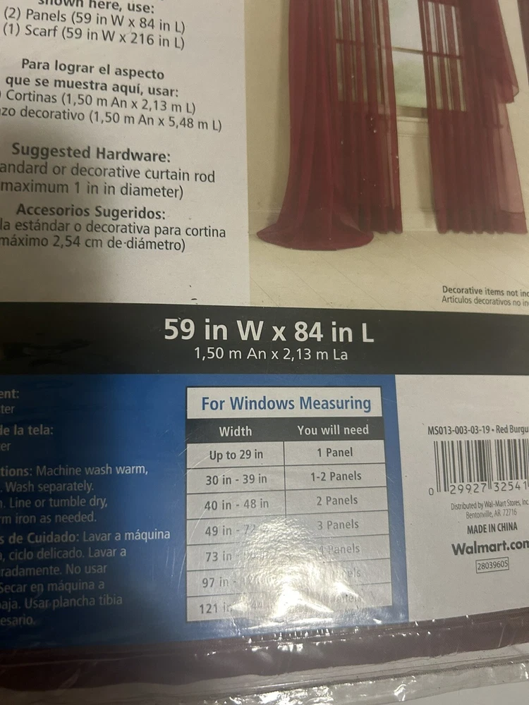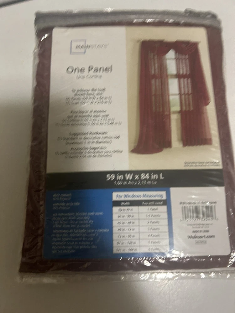 1 Mainstays 84 x 59 inch Sheer Voile Curtain Panel burgandy