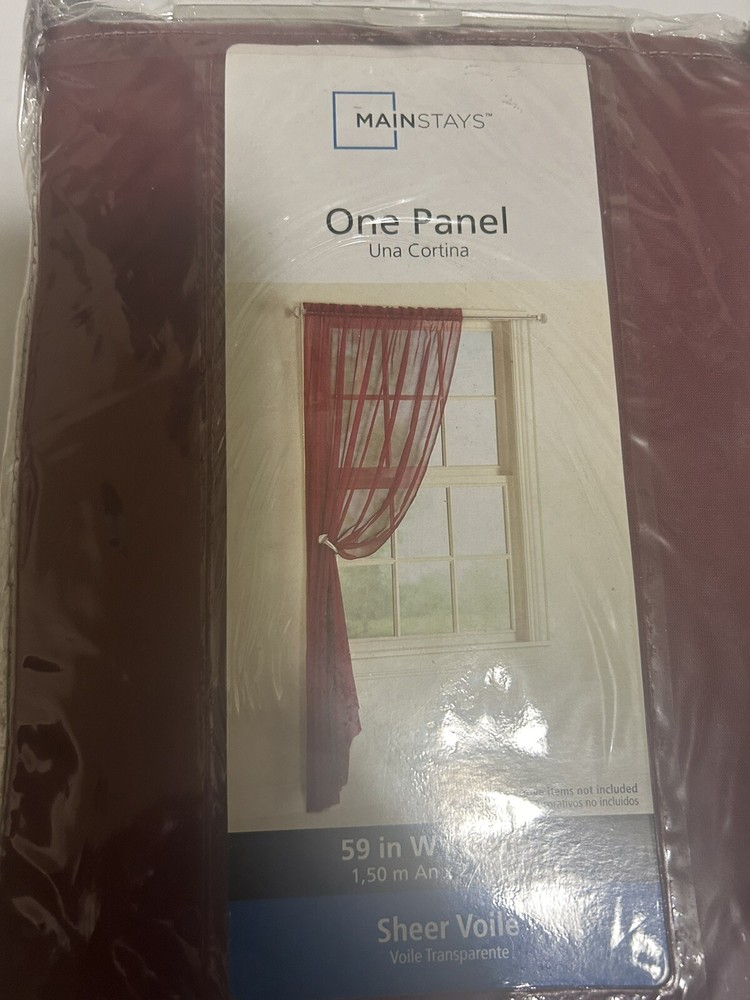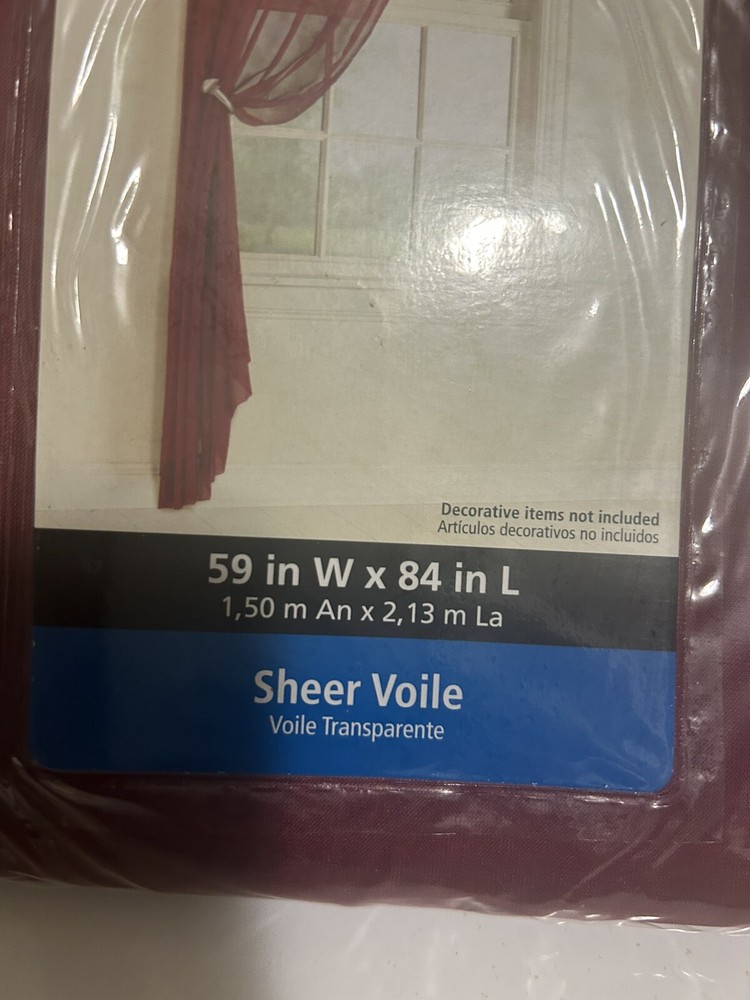 1 Mainstays 84 x 59 inch Sheer Voile Curtain Panel burgandy...