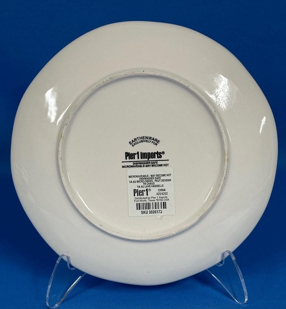 One Pier 1 Imports Sandpiper salad plate in excellent, preowned condition. No chips, no cracks, no crazing. Measures about 8" in diameter. Dishwasher safe. 1 Pier 1 Imports SANDPIPER Salad Plate Ocean Beach Design 1 Pier 1 Imports SANDPIPER Salad Plate Ocean Beach Design Click images to enlarge Description One Pier 1 Imports Sandpiper salad plate in excellent, preowned condition. No chips, no cracks, no crazing. Measures about 8" in diameter. Dishwasher safe. Please note my positive feedback and bid with confidence. If you have any questions, please feel free to e-mail me. Thanks for looking! (Shelf Q) International Buyers - Please Note: Import duties, taxes, and charges are not included in the item price or shipping cost. These charges are the buyer's responsibility. Please check with your country's customs office to determine what these additional costs will be prior to bidding or buying. Payment Payment is due within 4 days of auction end. Buy It Now requires immediate payment. Shipping Buyer pays all shipping expenses. Please use the shipping calculator in the listing if possible. Insurance is included, if necessary, in a shipping and handling charge. International bidders should e-mail me for a shipping quote. Combined shipping for multiple purchases is always welcome. Terms of Sale Items sold are generally one of a kind purchased from estate sales, garage sales, department stores, and outlet malls and are sold as is. Sales are final so please review the photos and ask any questions before bidding. If you feel an item has been misrepresented, please contact me so we can work something out. I would like you to be as happy with your eBay experiences as I am with mine. As noted in my 100% positive feedback, I am an honest seller having lots of fun on eBay! It provides a wonderful outlet for my shopping passion! Get images that make Supersized seem small. Showcase your items with Auctiva's Listing Templates! THE simple solution for eBay sellers. Track Page Views With Auctiva's Counter On Jun 17, 2024 at 13:38:03 PDT, seller added the following information: