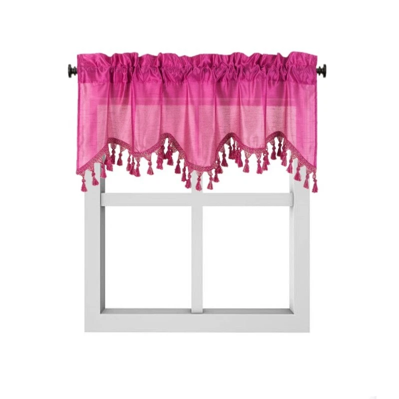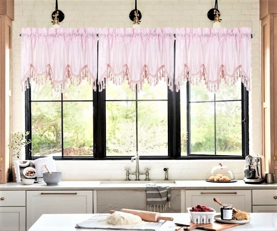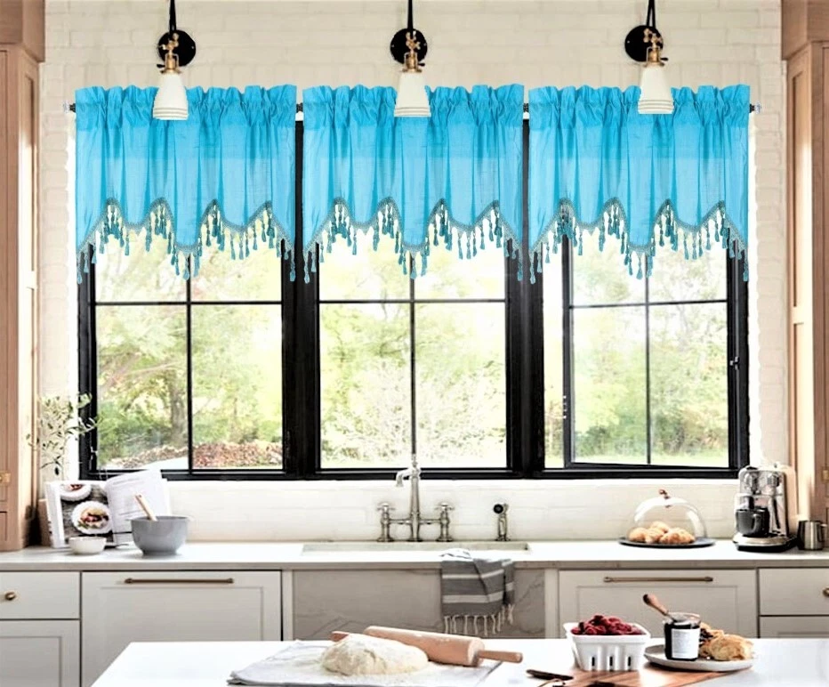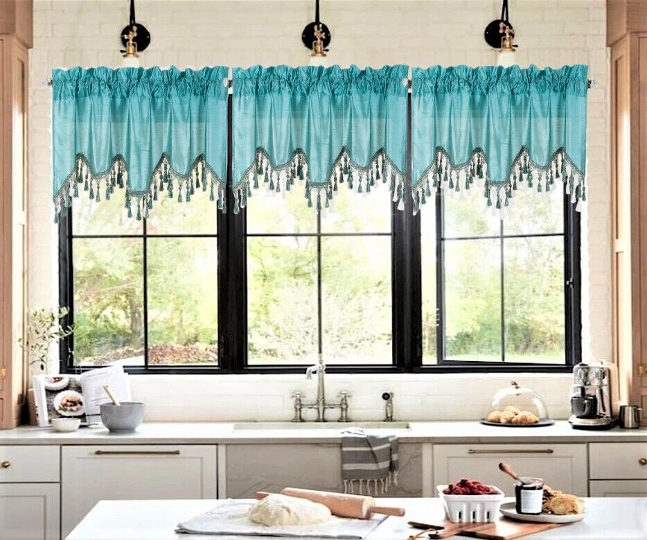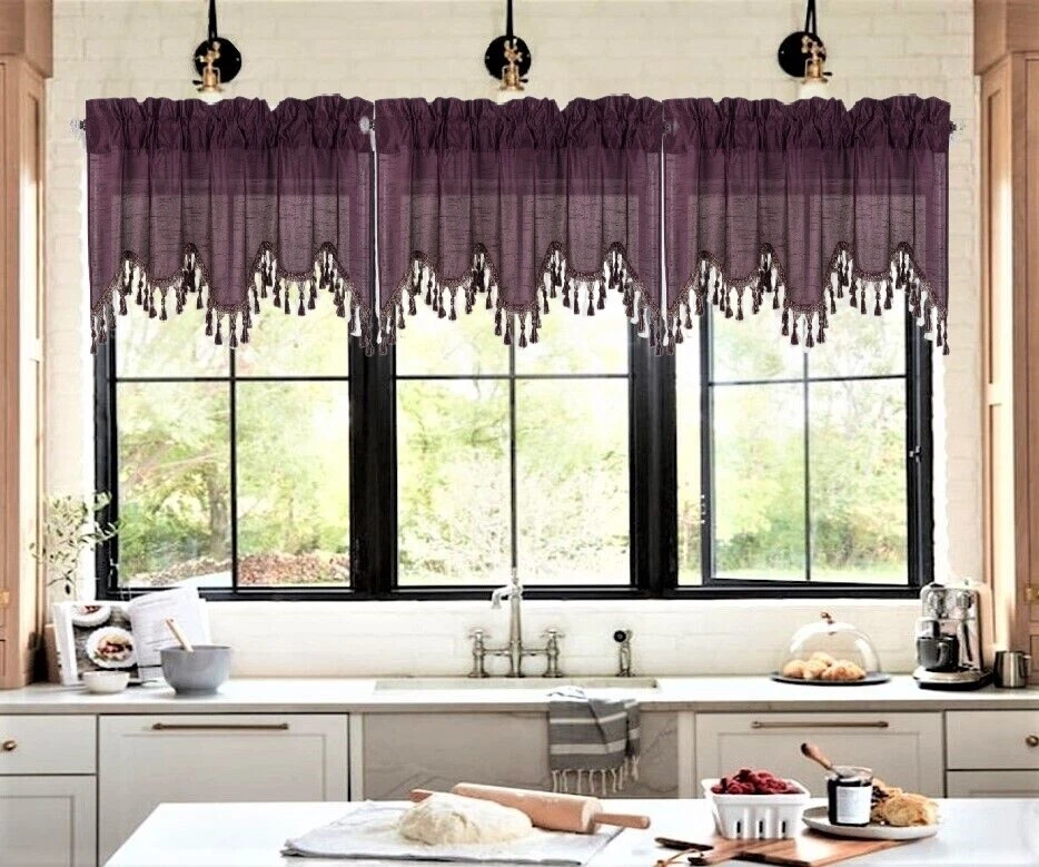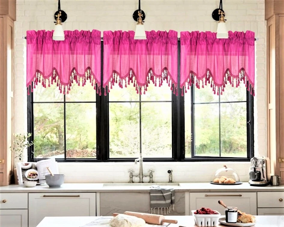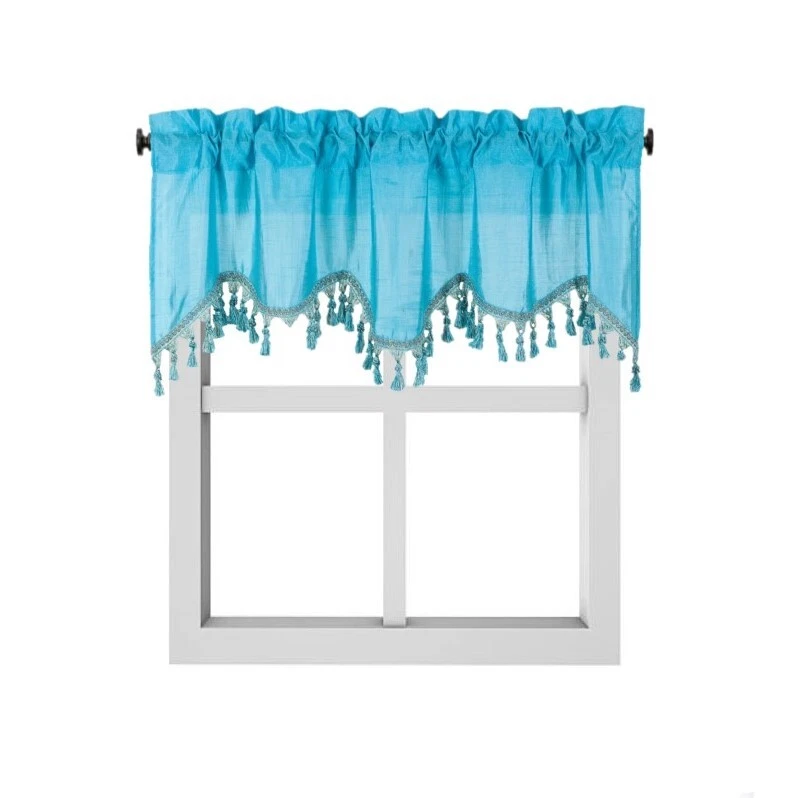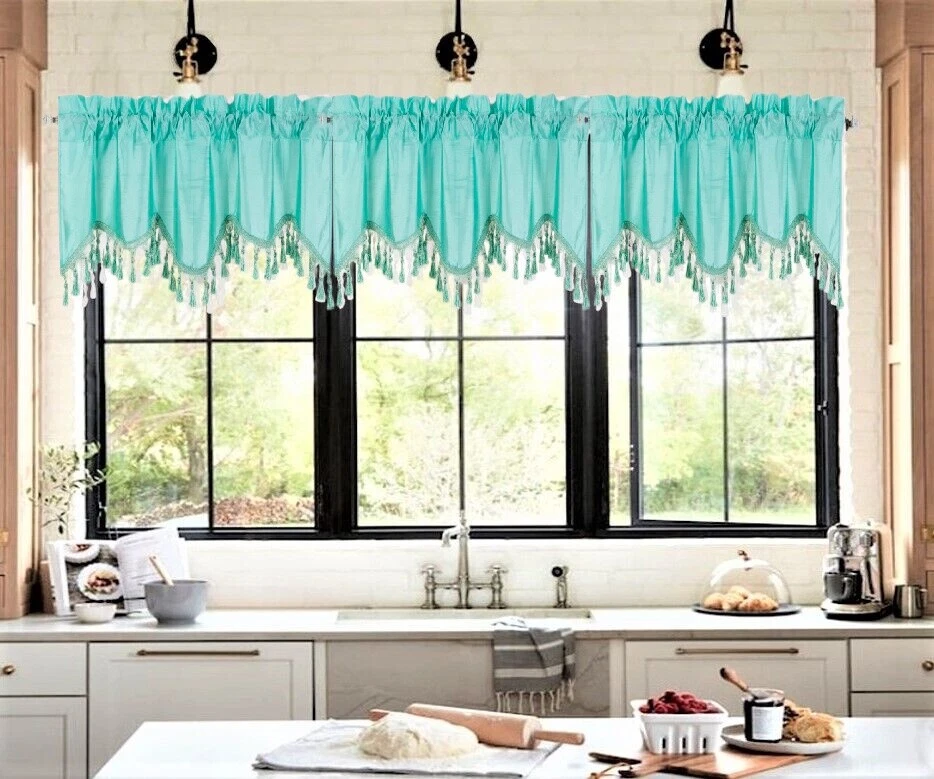 WAVE WATERFALL VALANCE YOU WILL RECEIVE 1PC SIZE: 55" WIDE X 18" LONG THIS ATTRACTIVE WINDOW VALANCE CAN BE USE AND HANG EASILY , TO MATCH YOUR EXISTING STYLE OR A NEW THAT YOU WANT TO TRY , LIVENS UP ANY ROOM AT YOUR HOME AND COMPLEMENT YOUR DECOR. USE ALONE OR WITH YOUR EXISTING CURTAINS . FOR A LAYER STYLISH USE MULTIPLE ,THE CASCADING STYLE OF THIS VALANCE GIVES YOUR HOME A RELAXED CASUAL FEEL AND LOOK. EITHER YOUR SPACE FAVORS IS THE FORMAL , THE CASUAL ,THE MODERN OR THE TRADITIONAL . -WE TRY OUR BEST TO MATCH THE PICTURE TO THE COLOR YOU WILL RECEIVE -PLEASE MAKE SURE TO CHOOSE THE CORRECT COLOR -HANG ON ANY DECORATIVE ROD ( ROD NOT INCLUDED ) -YOU CAN TRY TO MIX DIFFERENT COLORS TO MATCH YOUR DECORATIONS AT HOME CARE INSTRUCTIONS : -MACHINE WASH COLD -GENTLE CYCLE -DO NOT USE BLEACH -DRY ON LOW DELICATE SETTING -USE COOL IRON IF NEEDED "PLEASE ANY QUESTION FEEL FREE TO CONTACT US THANK YOU FOR READING "