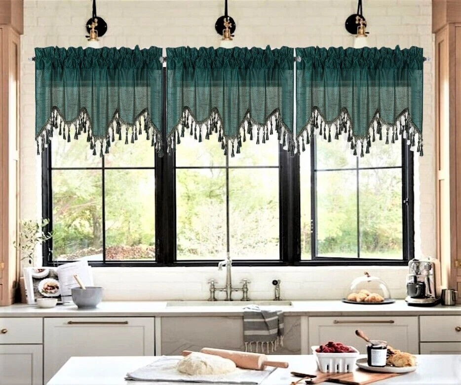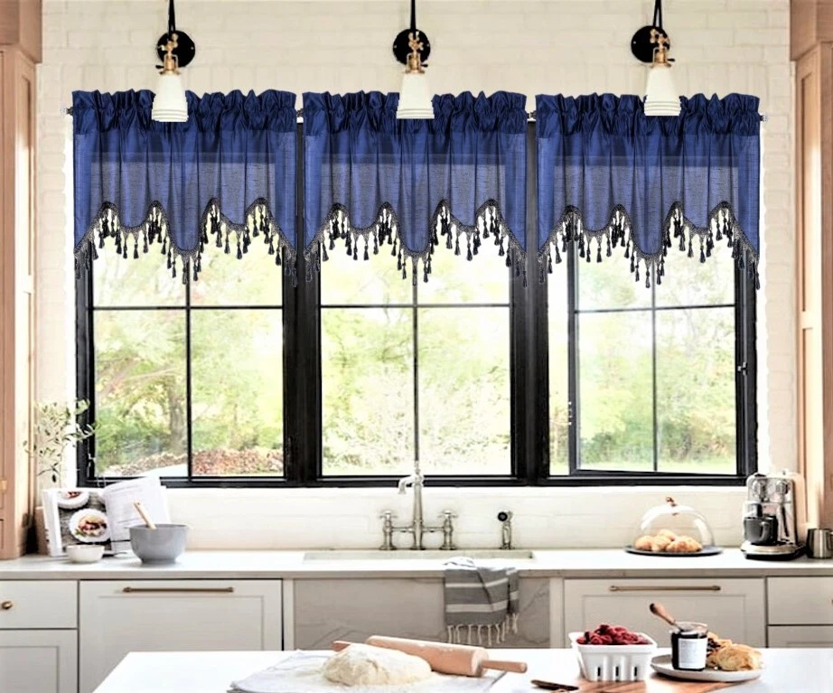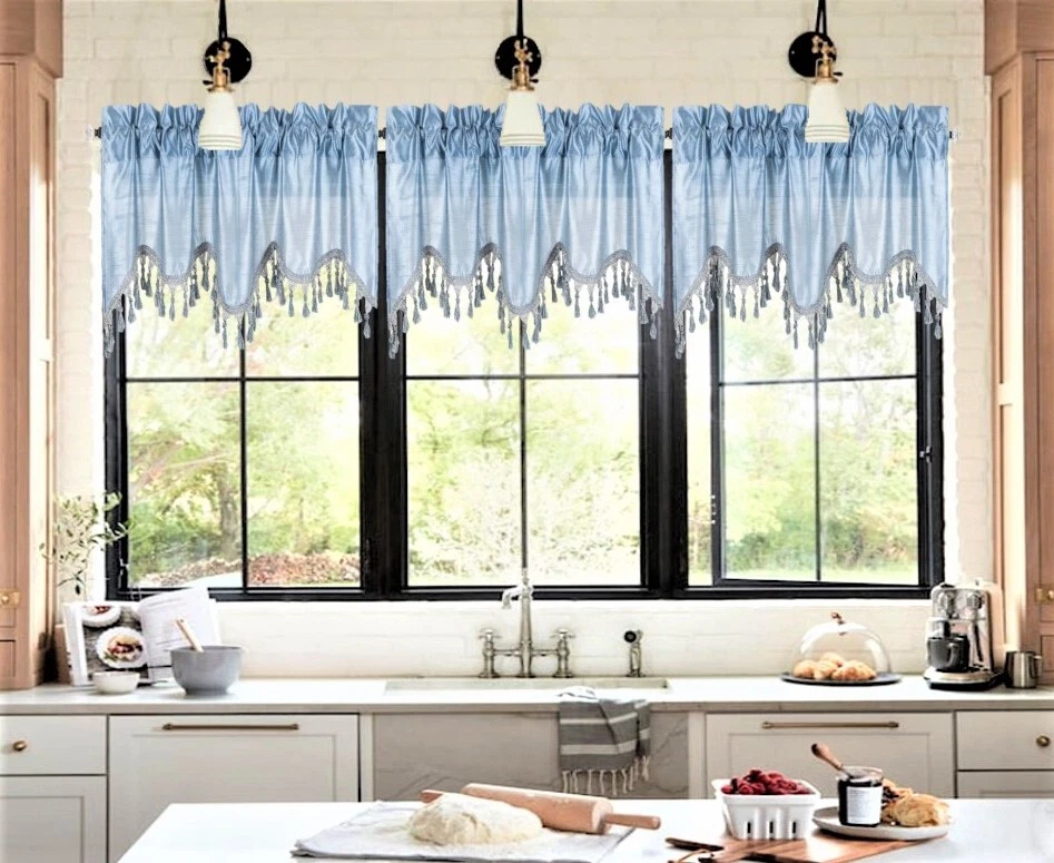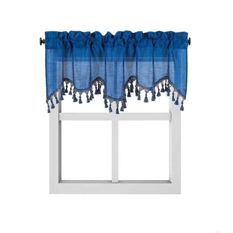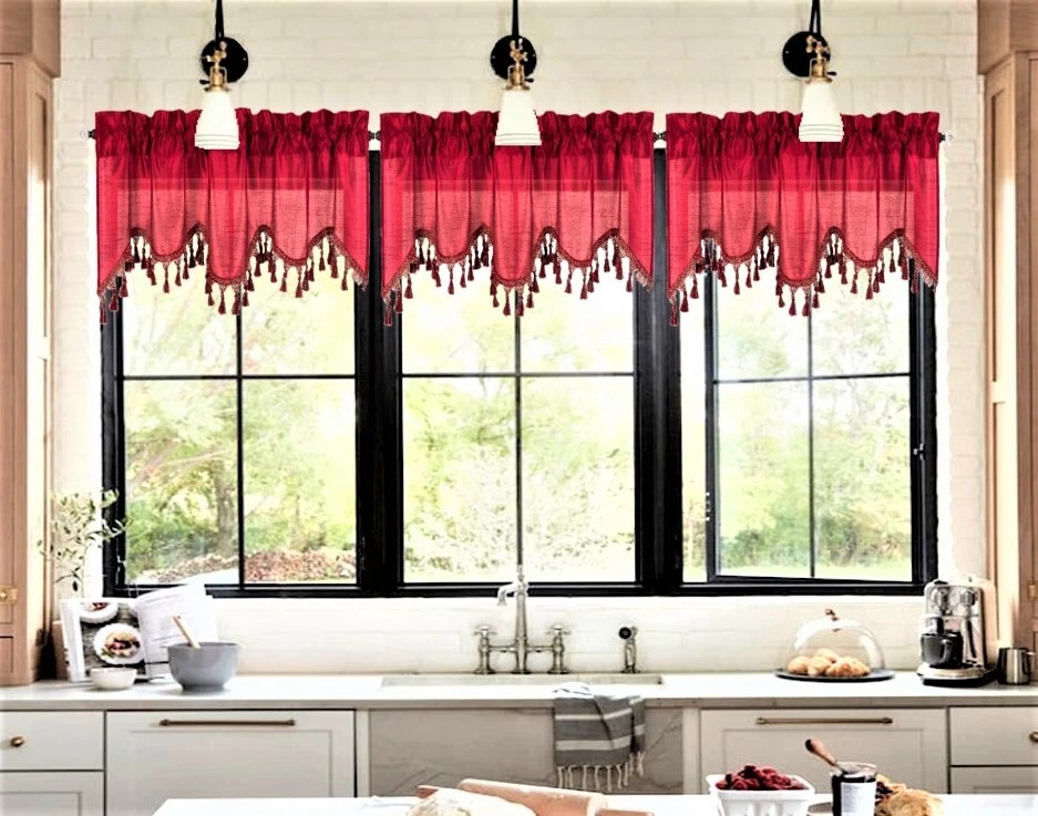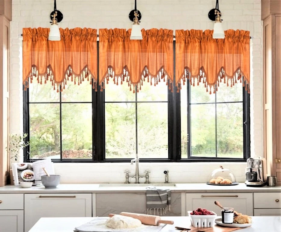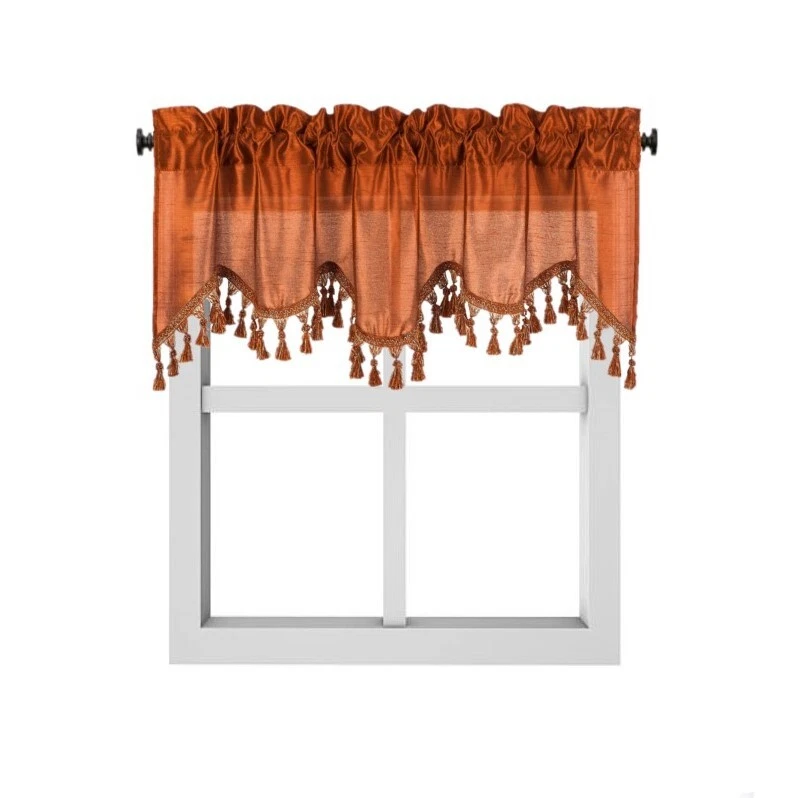 WAVE WATERFALL VALANCE YOU WILL RECEIVE 1PC SIZE: 55" WIDE X 18" LONG THIS ATTRACTIVE WINDOW VALANCE CAN BE USE AND HANG EASILY , TO MATCH YOUR EXISTING STYLE OR A NEW THAT YOU WANT TO TRY , LIVENS UP ANY ROOM AT YOUR HOME AND COMPLEMENT YOUR DECOR. USE ALONE OR WITH YOUR EXISTING CURTAINS . FOR A LAYER STYLISH USE MULTIPLE ,THE CASCADING STYLE OF THIS VALANCE GIVES YOUR HOME A RELAXED CASUAL FEEL AND LOOK. EITHER YOUR SPACE FAVORS IS THE FORMAL , THE CASUAL ,THE MODERN OR THE TRADITIONAL . -WE TRY OUR BEST TO MATCH THE PICTURE TO THE COLOR YOU WILL RECEIVE -PLEASE MAKE SURE TO CHOOSE THE CORRECT COLOR -HANG ON ANY DECORATIVE ROD ( ROD NOT INCLUDED ) -YOU CAN TRY TO MIX DIFFERENT COLORS TO MATCH YOUR DECORATIONS AT HOME CARE INSTRUCTIONS : -MACHINE WASH COLD -GENTLE CYCLE -DO NOT USE BLEACH -DRY ON LOW DELICATE SETTING -USE COOL IRON IF NEEDED "PLEASE ANY QUESTION FEEL FREE TO CONTACT US THANK YOU FOR READING "