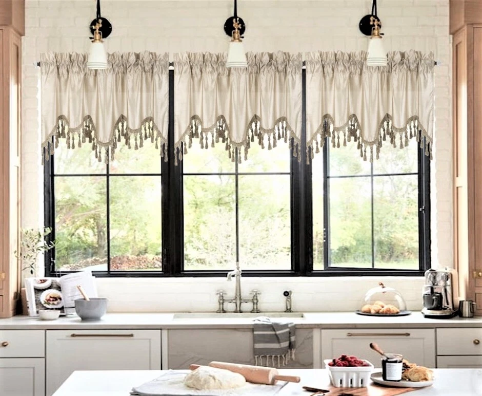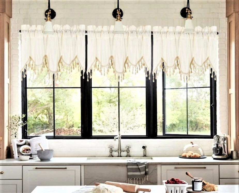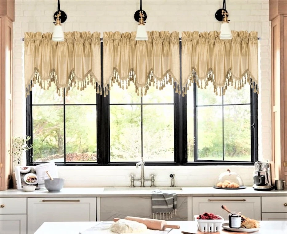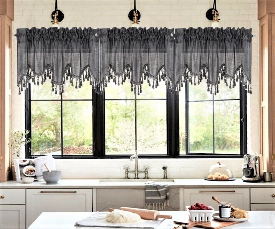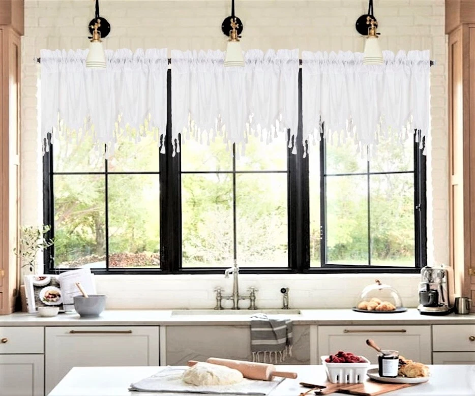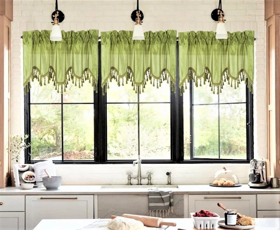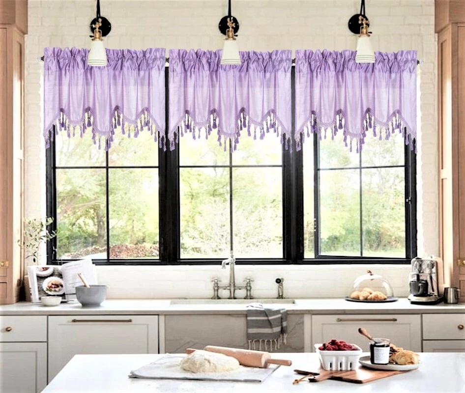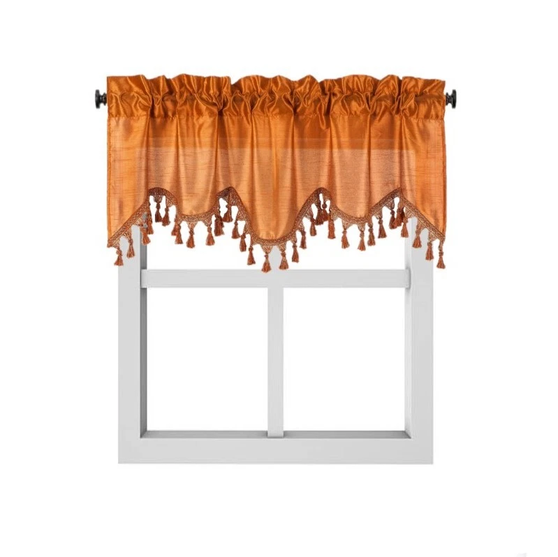 WAVE WATERFALL VALANCE YOU WILL RECEIVE 1PC SIZE: 55" WIDE X 18" LONG THIS ATTRACTIVE WINDOW VALANCE CAN BE USE AND HANG EASILY , TO MATCH YOUR EXISTING STYLE OR A NEW THAT YOU WANT TO TRY , LIVENS UP ANY ROOM AT YOUR HOME AND COMPLEMENT YOUR DECOR. USE ALONE OR WITH YOUR EXISTING CURTAINS . FOR A LAYER STYLISH USE MULTIPLE ,THE CASCADING STYLE OF THIS VALANCE GIVES YOUR HOME A RELAXED CASUAL FEEL AND LOOK. EITHER YOUR SPACE FAVORS IS THE FORMAL , THE CASUAL ,THE MODERN OR THE TRADITIONAL . -WE TRY OUR BEST TO MATCH THE PICTURE TO THE COLOR YOU WILL RECEIVE -PLEASE MAKE SURE TO CHOOSE THE CORRECT COLOR -HANG ON ANY DECORATIVE ROD ( ROD NOT INCLUDED ) -YOU CAN TRY TO MIX DIFFERENT COLORS TO MATCH YOUR DECORATIONS AT HOME CARE INSTRUCTIONS : -MACHINE WASH COLD -GENTLE CYCLE -DO NOT USE BLEACH -DRY ON LOW DELICATE SETTING -USE COOL IRON IF NEEDED "PLEASE ANY QUESTION FEEL FREE TO CONTACT US THANK YOU FOR READING "