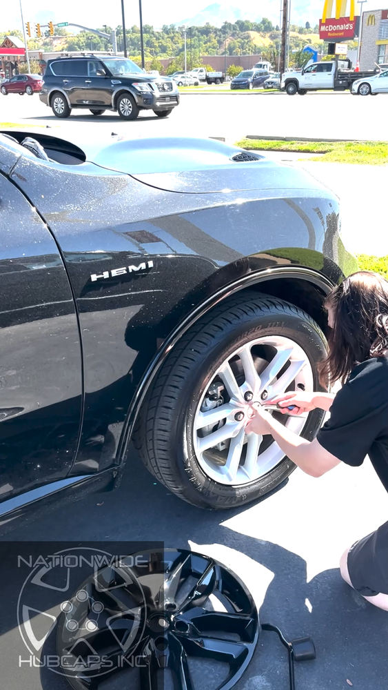 1 New Gloss Black 20" Wheel Skin fits 2021-2025 Dodge Durango GT & R/T models 1 New 20" Black Wheel Skin Replacement ** PLEASE LOOK AT ALL PICTURES PROVIDED ** fits 2021-2025 Durango GT and GT Plus, also on R/T and R/T Plus models. Must have exact wheel shown in order for these to fit. **WATCH THE QUICK INSTALL VIDEO** One (1) New Exact Fit Heavy Duty gloss black wheel skins Fits only the 20" Alloy Wheel that is shown in picture #2. To install, first you will pop out your center cap from your wheel, then snap these wheel skins on over your wheel. Then just snap your center caps back in place in the wheel skins. That is all there is to do! See installed in Before & After picture #3. These will cover up your entire wheel, and will expose only your Existing Center Emblem and your Lug Nuts, see picture # 4. Wheel skins are made of heat/impact resistant auto grade ABS, then painted gloss black for an aggressive looking finish. These snap on tight & secure, as these are made to fit only wheel we have pictured. Very easy to install, and they will not interfere with your wheel weights. These snap on around the backside of the 10 spokes of the wheel, see Pictures # 6-8. No, these will not fit any steel wheels, or any other wheel, these will only fit the wheel shown in the 2nd picture. No Dodge emblems are included, these utilize your existing emblems. PRICE INCLUDES 1 WHEEL SKIN & FREE SHIPPING** **NOTE: Free Shipping to Lower 48 US States Only! **AK, HI, PR, US Territories & International Cost Extra WHEN CHECKING YOUR TIRE SIZE, DO NOT MEASURE THE HUBCAP, IT WILL GIVE A LARGER SIZE THAN NEEDED. FOR THE CORRECT SIZE IT GOES BY THE TIRE SIZE. CHECK THE SIDEWALL OF YOUR TIRE FOR A SERIES OF #'S LIKE: P255/50/R20 . THE R20 IN THE EXAMPLE IS THE HUBCAP/TIRE/WHEEL SIZE YOU NEED TO ORDER THE CORRECT SIZE. BY ENTERING A QUANTITY OF 1 YOU WILL GET 1 WHEEL SKIN SHIPPED TO YOU This 1 new replacement snap on blacked out wheel skins fit 2021 2022 2023 2024 2025 Dodge Durango GT, GT Plus, R/T, R/T Plus models with the 20" aluminum alloy painted silver wheel we have pictured. These will snap right over top and will expose your existing Dodge center caps and lug nuts. No, these will not fit any other wheels, steel or aluminum, you must have the wheel we have pictured.
