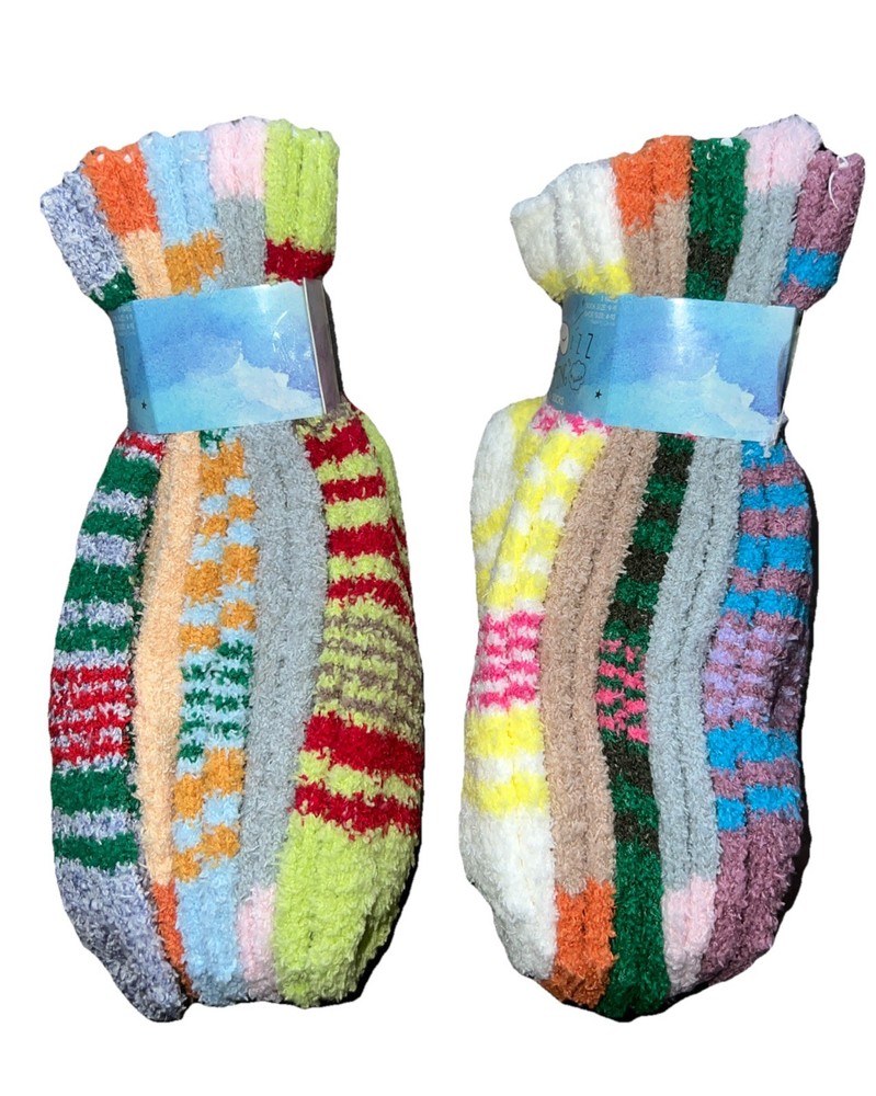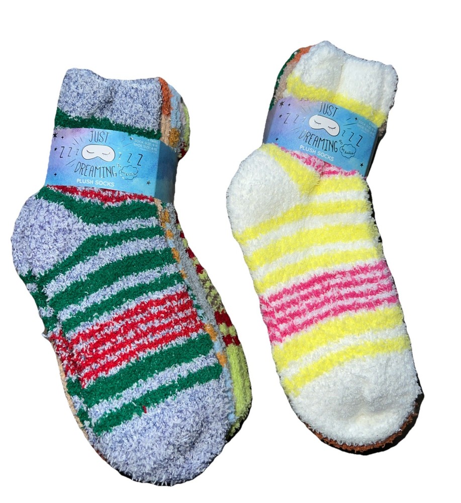 Just Dreaming By Chatties Shoe Sz 4-10 Striped Fuzzy Cozy Plush Socks 10 Pairs Ultra soft!