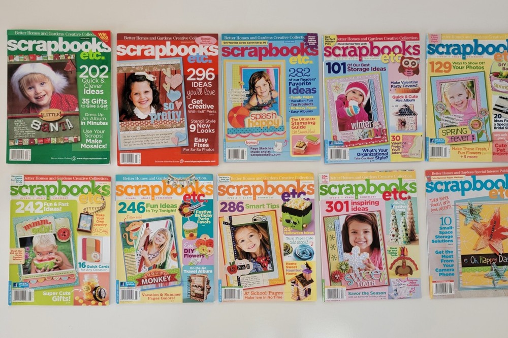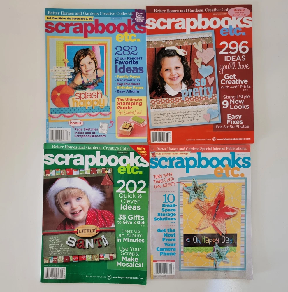 (10) Scrapbooks Etc. Magazines~ Better Homes Gardens Creative Collections~ NEW ~ 1 magazine has an area of glue where my address label was removed. ~ All have been stored in a safe place but never used/read see photos for issues and date information. ~The product is a collection of 10 Scrapbooks Etc. magazines from Better Homes & Gardens Creative Collection, featuring a variety of creative crafting ideas and projects. ~The magazines cover topics such as stamping, vacations, parties, art, crafting books, stencils, paper crafts, holidays, jewelry making, weddings, mosaics, and pet projects, and lots of other crafting ideas to numerous to list. ~ Each issue likely includes step-by-step tutorials, inspiration, and tips for creating unique and beautiful crafts for various occasions. ~This collection would be a valuable resource for any crafting enthusiast looking for new ideas and techniques to try out. ~ Items will need to be paid for within 4 days of purchase, or they will need to be relisted. ~ Shipments will normally go out on same day or next day depending on payment receipt. ~ Combined shipping upon request unless too fragile to do so. Please refer to and view photos closely before purchasing, for full item condition, details, measurements & any questions you may have as they serve as a major part of my description. Thanks for stopping to take a look, and thanks for your small business support!! Very much appreciated!! If there are any issues with an item you have purchased, please contact me after receiving it so that I can correct it if need be. 1779/JAN/013025