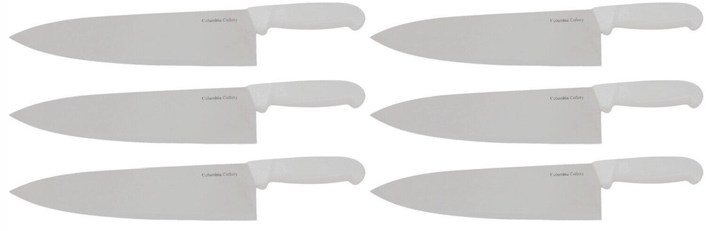 COZZZINI CUTLERY IMPORTS PROFESSIONAL KITCHEN KNIVES - 10" WHITE CHEF KNIFE *SAVE BIG WITH 3 AND 6 PACKS* COZZINI CUTLERY IMPORTS - Quality Commercial Kitchen Knives at Fantastic Prices. 10" chef knife with Polypropylene handle. Save big with 3 packs and 6 packs. HOLLOW GROUND, ERGONOMIC - The knife is hollow ground and will hold an edge for a good long while. DESIGNED FOR COMMERCIAL KITCHENS - Excellent go-to knife for bell peppers and tomatoes. It's a durable, heavy duty commercial kitchen knife for cooks and chefs in any type of environment. RAZOR SHARP EDGES - We professionally sharpen it before shipping, so you will get a fantastic, way better than factory edge too. These are trusted chef knives from a trusted brand! NSF CERTIFIED, DISHWASHER SAFE - If for any reason you are not 100% satisfied, send the knife back within 30 days of receiving them. We will immediately give you a full refund. We will pay return shipping as well! 100% GUARANTEED - If for any reason you aren't happy with your knives, send them back at our cost for a Full Refund or Exchange Cozzini Cutlery Imports - Quality Commercial Kitchen Knives at Fantastic Prices. 10" white chef knife with Polypropylene handle.