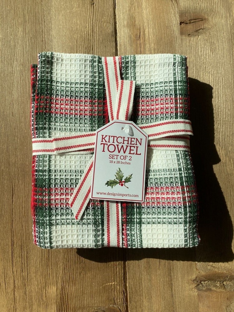 Brand new 18"x28" Kitchen towels waffle weave plaid and striped dishtowel. Dishtowels folded and tied with a white ribbon with red stripes. Very cute, would make a nice gift! 100% cotton Free Shipping! Be sure to check out my other listings for more cute dishtowels!