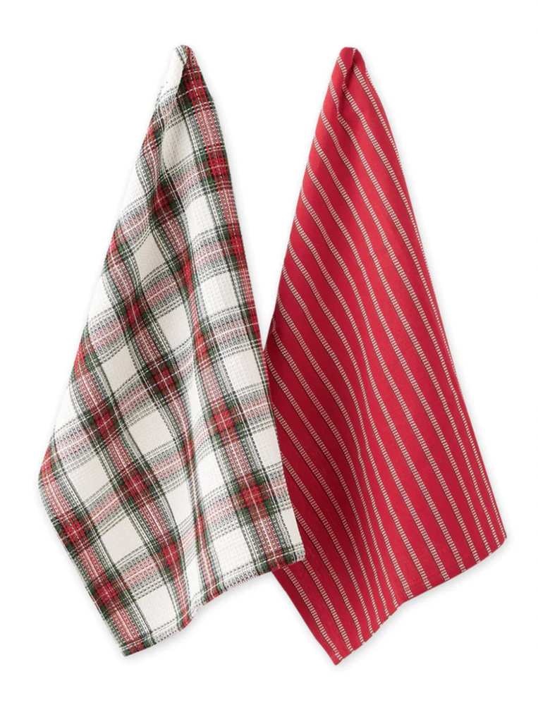100% Cotton Plaid & Stripe Christmas Dish Towels Set of 2 - 18x28 Inches
