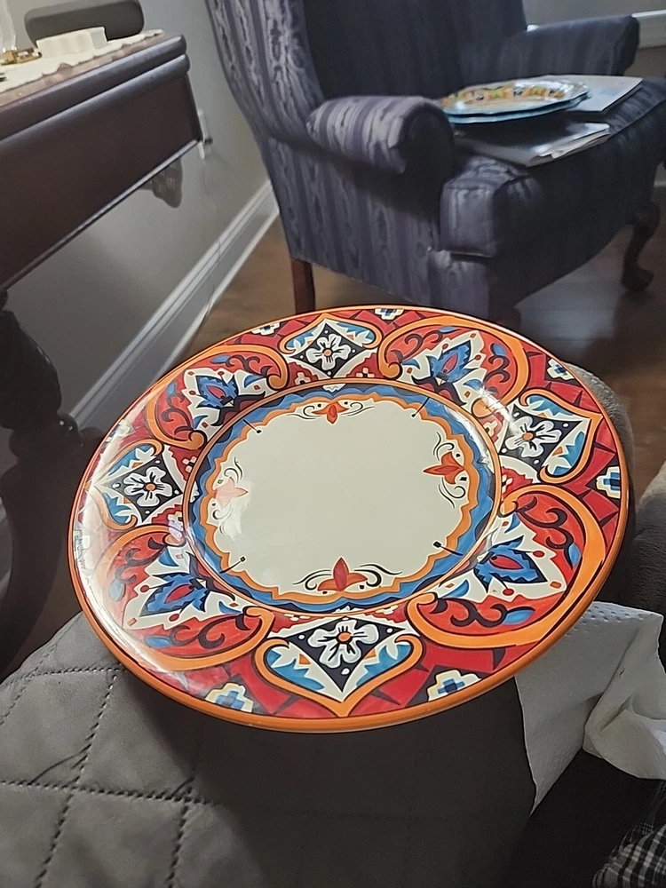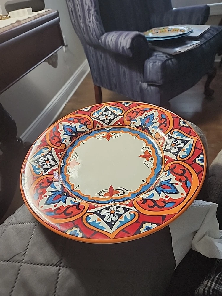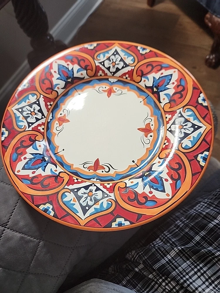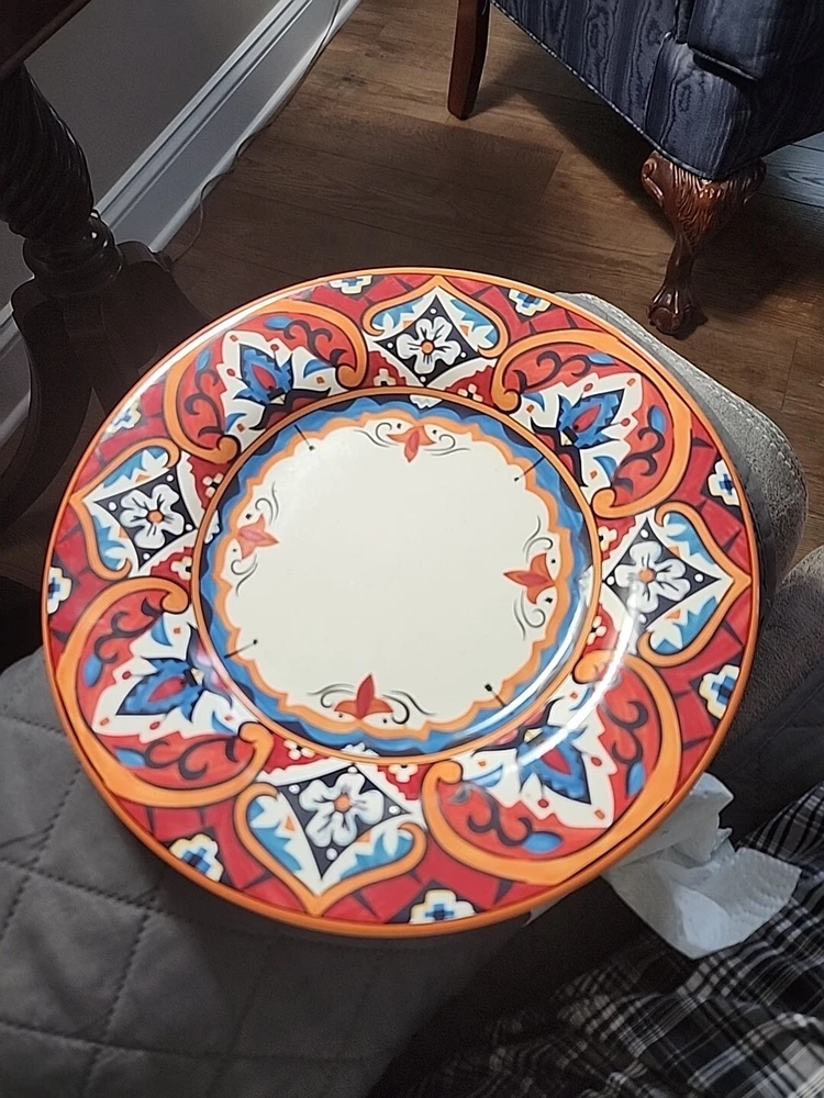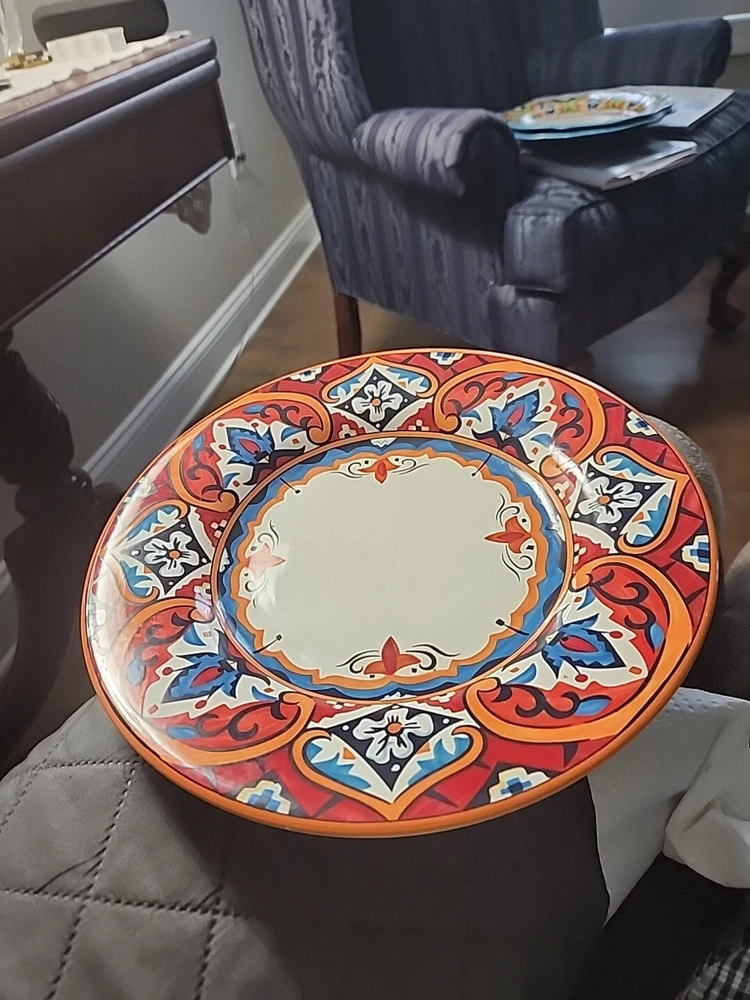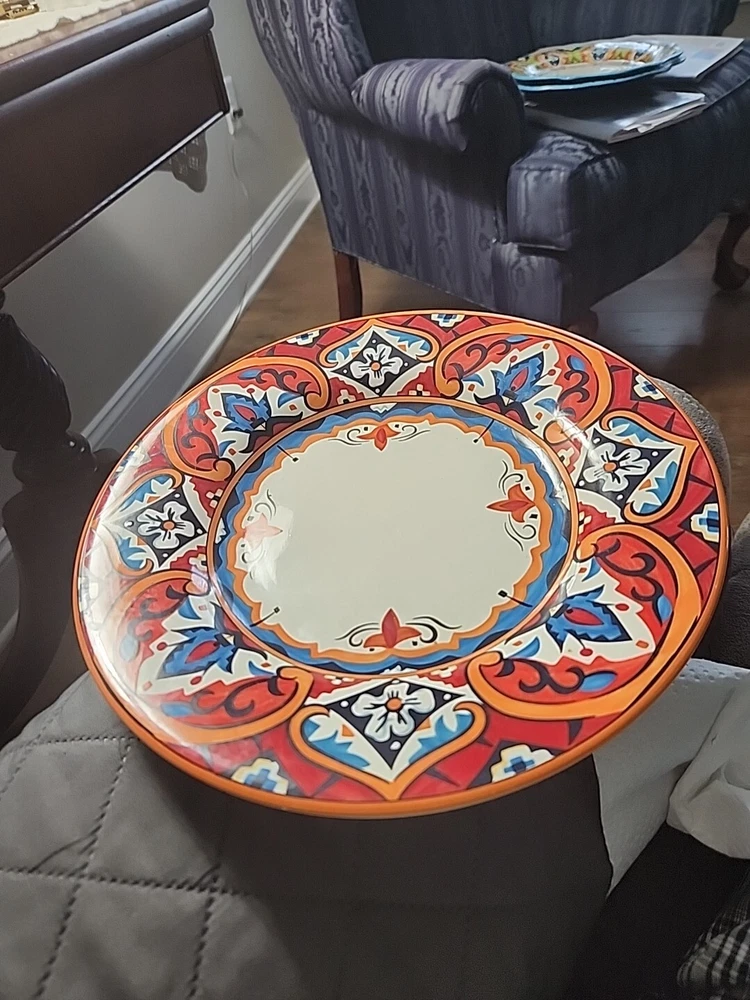 This gorgeous 11” dinner plate instantly elevates any meal with its bold Karina Tile pattern—vibrant colors pop against the glossy ceramic finish. Perfect for modern tables, it’s durable, stylish, and makes every dish look special. A standout piece from Pier 1 that adds flair to everyday dining or entertaining. Love the unique design!