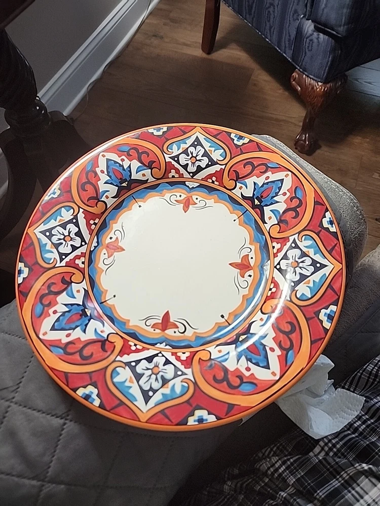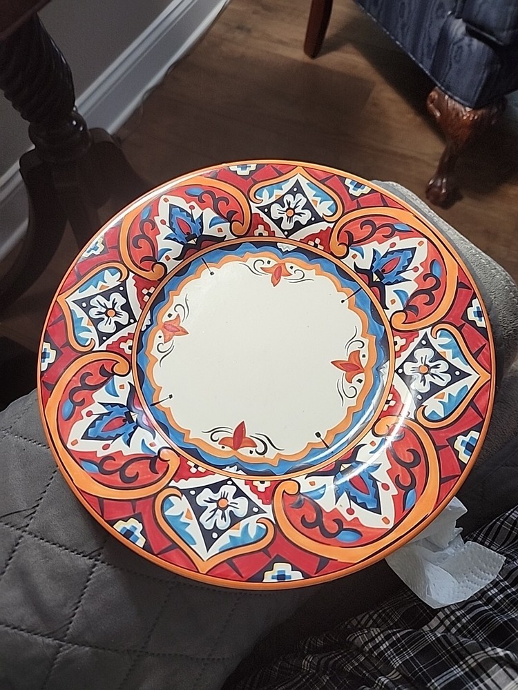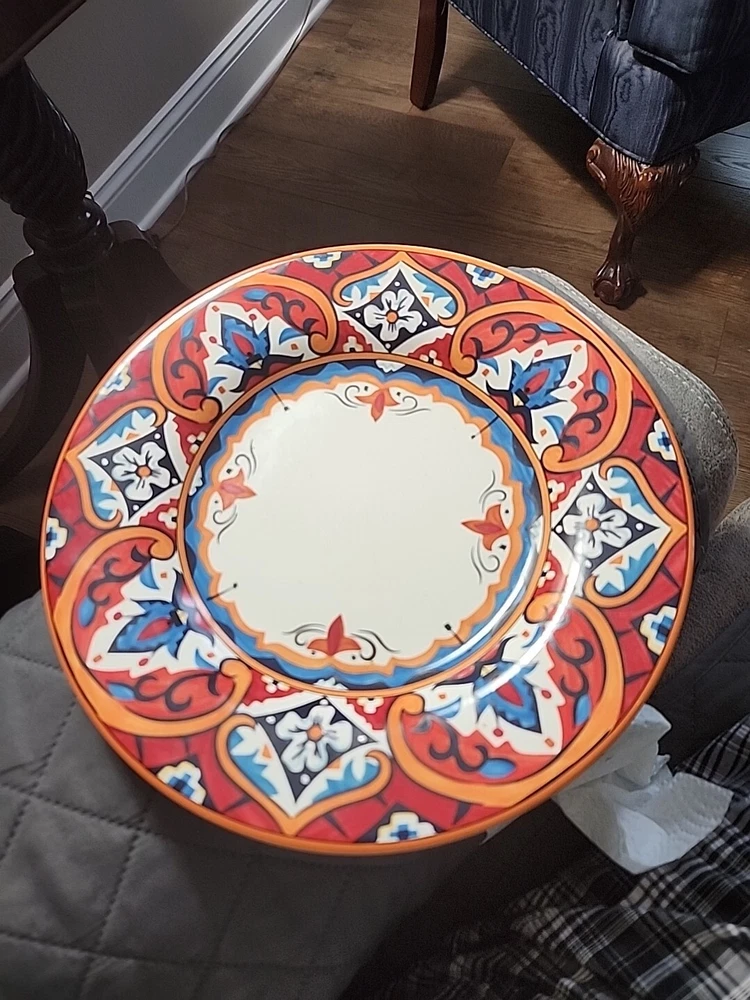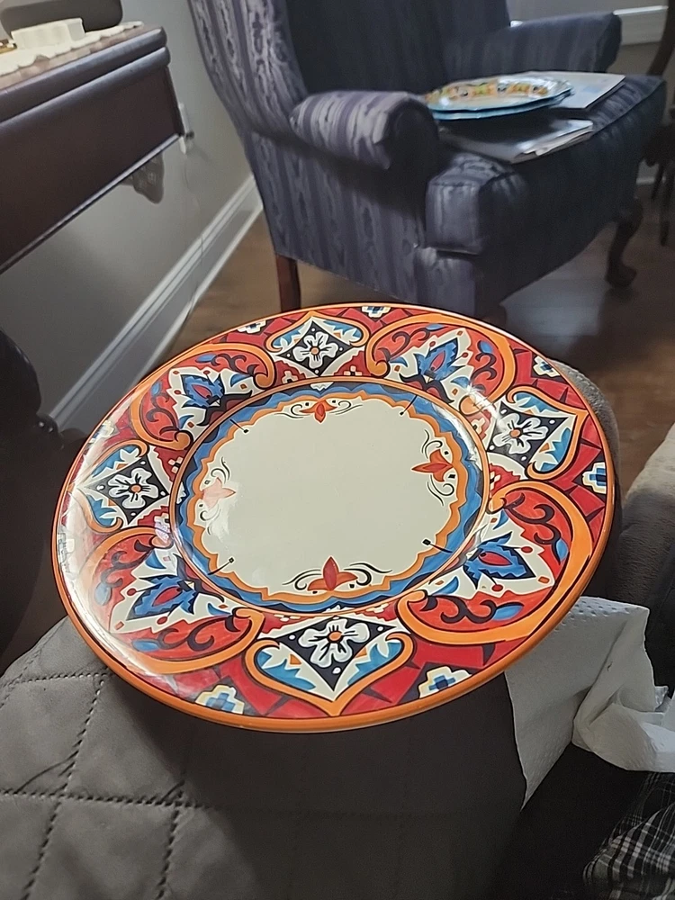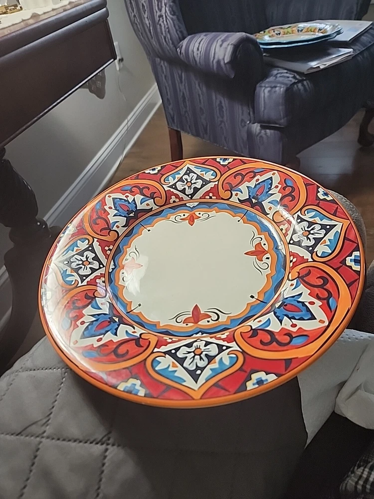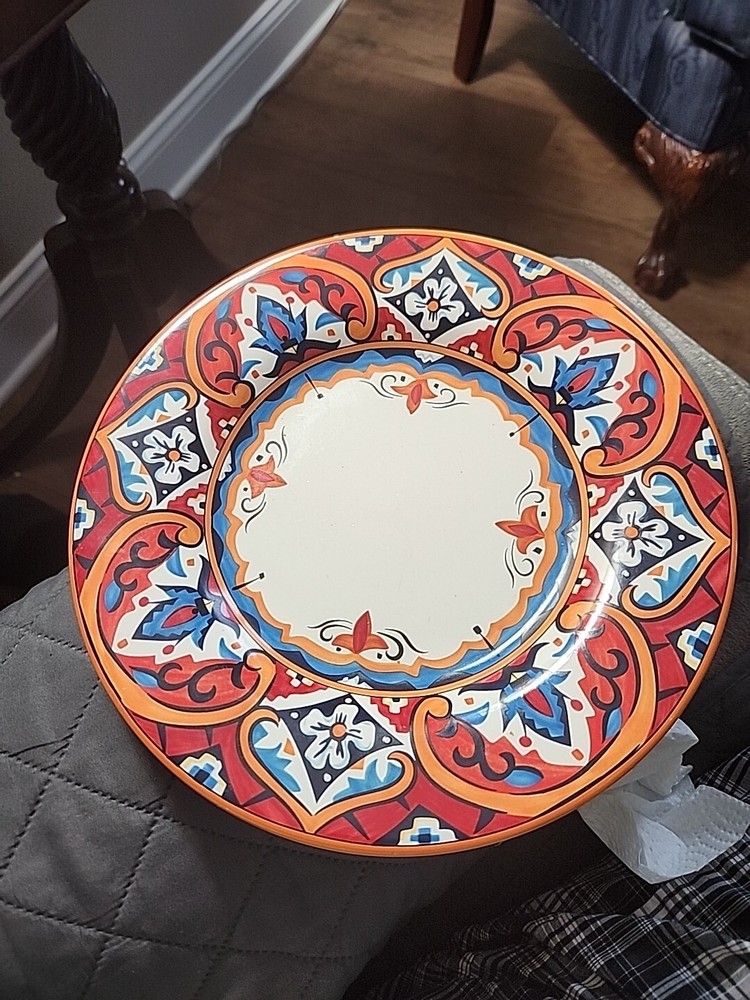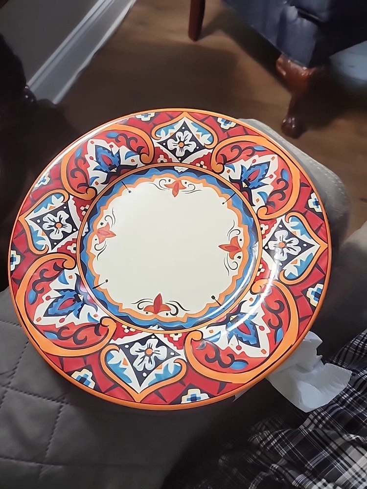 This gorgeous 11” dinner plate instantly elevates any meal with its bold Karina Tile pattern—vibrant colors pop against the glossy ceramic finish. Perfect for modern tables, it’s durable, stylish, and makes every dish look special. A standout piece from Pier 1 that adds flair to everyday dining or entertaining. Love the unique design!