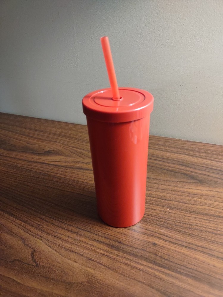 11 Mainstays 20oz Plastic Tumbler Lot with Screw Top Lid and Straw, Red Christmas Brand new