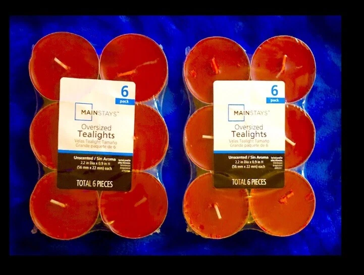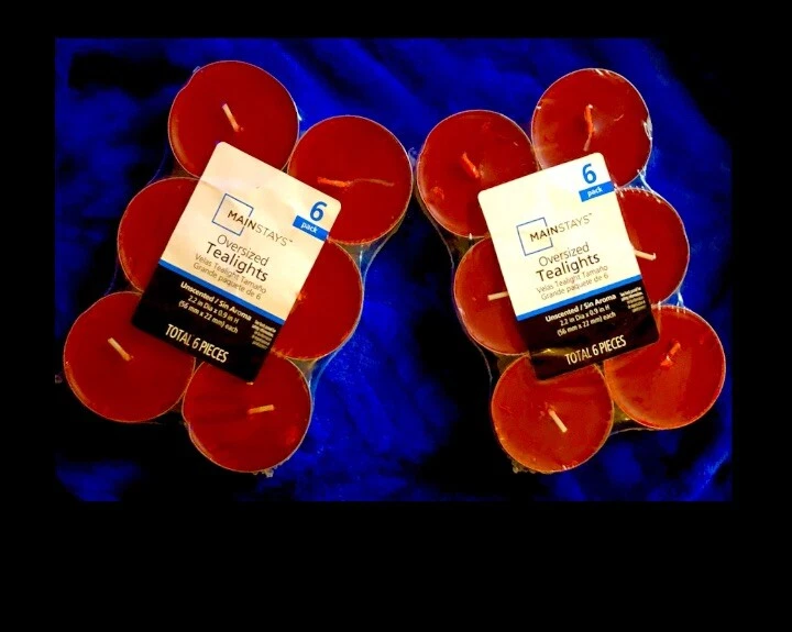 You will receive -(as shown in pictures) 12 candles (2 x 6 pack) Save more when you buy more! Thank you for viewing this item. Please take a minute and check out our other wide selections and variety of items also our selection of similar products… ( Condition is new in factory sealed packs ) Color : red with silver tins Pattern : solid Design/mode l is: mainstays oversized jumbo tealight candles Burns up To 9 Hours each Size :jumbo/oversized 2.2”Diameter x 0.9” Height quantity :12 pieces (2 x6 packs) ************************************ (More information from the manufacturer below ). ******************************** All and any questions are welcome and will be answered ASAP if not -immediately before and also even after receipt of your purchase. ******** Our intention is to provided you excellent service. Customer satisfaction is our goal. Positive feedback is very important to us. Negative feedback is damaging and not necessary as we are ALWAYS willing to resolve an issue should it occur. SHIPPED SUPER FAST. SHIPPED OUT BY THE SAME DAY OR NEXT BUSINESS DAY TO ANYWHERE IN THE USA. NO TIME WASTED. GET YOUR PRODUCT FASTER!! Allow for tones and color differences due to flash photography and screen/ monitor differences. ————————————————— We aim to show you accurate information. The below information is supplied by the manufacturer. We have not verified or tested the validity. We are only able to describe the item as it is described to us by the manufacturer,labels and packaging. Details from the manufacturer…. FEATURES AND SPECIFICATIONS : extra large jumbo tea lights 2.2”Diameter x 0.9” Height 9 Hour Burn Time Unscented Candles Can be placed inside Glass/Ceramic Cup Holder Cotton Wick Contains no Lead Decorative Tealight Candle silver aluminum metal casing great for placing in flame-safe lanterns/candle holders used for everyday decorating needs or to make special occasions Great in emergency situations eg. when the power goes out. provides the light/ambiance needed in any situation each candle in its own silver aluminum cup beautiful centerpiece for holidays/romantic settings Great for creating setting for relaxing spa atmosphere. Indoor and outdoor use decorative and lighting use can be used for weddings,birthdays, anniversaries & more. Description : Mainstays unscented oversized jumbo tealights are a home décor staple. Give your decorative spaces light with the help of extra large tea lights! Jumbo Tea Light Candle Value Packs feature a classic colors and silver aluminum metal casing. Complete with a single wick, these candles are great for placing in flame-safe lanterns and candle holders! With multiple uses, tealights can be used for your everyday decorating needs or to make special occasions sparkle Great for those emergency situations when the power goes out. Extended Long burning time up to 9 hours each, these will provide the light and ambiance you need in any situation. Each tealight measures 2.2”Diameter x 0.9” Height each candle is in its own silver aluminum cup Shrink-wrapped for added protection. Great for Indoor and outdoor use. For decorative and lighting use. For optimal performance, the cotton wick should be trimmed to ¼” before lighting. Keep away from children and pets. These Way To Celebrate quality tealight candles can be used with any decor. Whether it be a beautiful centerpiece for the holidays, an upscale romantic restaurant setting, or a relaxing spa atmosphere. The tealight candles will fit many tealight holders, or you can even create your own crafty candle holder out of mason jars, wine glasses, and even scrap pieces of wood. These tealight candles can be used for weddings, birthdays, anniversaries, and much more. The opportunities are endless when thinking up new ways to use long burning tealight candles. Tealight candles can be used for: Standard tealight holders, Romantic centerpieces, Floating centerpieces, Potpourri warmer, Scented wax burner, Aromatherapy essential oil burner, Tea pot warmer, Fondue burner, Chaffing dishes, Butter warmer And much more! 12pk tealight candle set brings elegant illumination to your space Can be used as standalone decorations or with candleholders Unscented candles can be placed on a variety of non-flammable surfaces For safety keep away from children/pets and flammable surroundings. ——————————————————— ————- ——————————————————— ————- ———— D. ———- ———— ———- ——————————————————— ————- ——————————————————— ————- ———— D. ———- ———— ———- —— —— —— —- STORAGE #0.25indoorstrgestrwell……… S ! A.