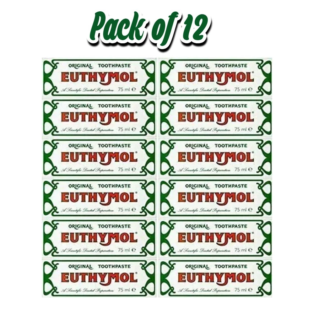 12 PACK Euthymol Original Toothpaste 75ml Euthymol Original Toothpaste Is Recognized For Its Distinctive Bright Red Color And Unique Flavor. It Contains Thymol, A Natural Antiseptic Extracted From Thyme Oil, Which Helps In Maintaining Oral Hygiene And Fighting Bacteria That Can Cause Tooth Decay And Gum Disease. The Formula Is Designed To Provide Effective Cleaning And Protection For Teeth And Gums. Ingredients: Thymol, Sodium Fluoride (In Some Formulations), Glycerin, Sodium Saccharin, Water, Sodium Lauryl Sulfate, Sodium Silicate, and Various Abrasives and Flavoring Agents. Feature: Provides Thorough Cleaning Of Teeth And Gums. Helps In Fighting Bacteria And Maintaining Oral Hygiene. Contains Fluoride In Some Formulations, Which Helps In Preventing Cavities. Leaves The Mouth Feeling Fresh And Clean. HOW TO USE: Use As You Would Any Other Toothpaste. Apply A Pea-Sized Amount Onto A Toothbrush And Brush Teeth Thoroughly For At Least Two Minutes. Use Twice Daily For Best Results, Or As Recommended By Your Dentist. ____________________________________________________________________________________________________________________________________________________________________________________________________________ Discover our exceptional product that is tailored to satisfy your requirements and surpass your anticipations. We have meticulously created this product with great care and precision to guarantee that it meets the highest standards. Our dedication to quality and customer happiness is something we take pride in, and we are certain that you will be thrilled with your purchase. Don't hesitate any longer. Place your order now and experience excellence for yourself! PAYMENT OPTIONS You can make payments through PayPal accounts, which offer the convenience of paying with a major credit card or direct transfer from your bank account. DOMESTIC SHIPPING We take great care in shipping our product to ensure that it arrives at your doorstep in perfect condition. 1-If you place an order Monday through Thursday, it will be shipped the same day. 2- Orders placed on Friday and Saturday will be shipped on Monday, while orders placed on Sundays or Federal Holidays will be shipped the following business day. 3- You will receive a tracking ID within 24 hours of placing your order. We offer Standard, Expedited, and Express shipping options through USPS or UPS. BUYER NOTE We offer authentic products that are shipped within 24 hours of your order being placed. If the delivery service shows that your product is "In Transit to Next Facility, Arriving Late," we are not responsible for any delays as the product is in the delivery service's possession. In such cases, please contact the delivery service directly. If your parcel is not delivered within 30 days of dispatch, we are obligated to issue a refund. Once a tracking ID is provided, we cannot accept cancellation requests. RETURNS & EXCHANGES Our company holds customer satisfaction in high regard, which is why we have implemented a comprehensive returns and exchanges policy. We understand that there may be instances where products fail to meet your expectations or fit comfortably. As a result, we have streamlined the process of returning or exchanging items to ensure that it is both effortless and stress-free for you. You will receive a refund in the form of a money-back guarantee. Our return policy allows you to return your purchase within 30 days of receiving it for a full refund or exchange if you are not completely satisfied. To be eligible for a return, the item must be in its original condition, with the label attached and in the original packaging. Please note that returns may be refused if these requirements are not met. We want you to know that we take great care in delivering high-quality products to our customers. We are proud of our attention to detail and accuracy in describing our products. We understand that mistakes can happen, and if you receive a product that does not match our description, we offer a hassle-free return policy. However, if the product is as described, the customer will be responsible for the return shipping cost, which will be deducted from the refund. Our policy ensures that we continue to provide excellent service and high-quality products at competitive prices. Thank you for considering our product, and we look forward to serving you. Customer satisfaction is of utmost importance to us at our company, and we always aim to offer the best possible shopping experience. Our returns and exchanges policy is a clear indication of our dedication to ensuring complete customer satisfaction. Damaged Shipments: If you have received damaged items during transit, please contact us within 48 hours of the confirmed delivery date. We will provide you with a printable label for the return shipment, and you will need to send the parcel back to us. This return shipment will not incur any charges. Unclaimed Packages: If packages are returned to us by the shipping carrier due to reasons like an "Incorrect Shipping Address," "Unclaimed," or "No Authorized Recipient Available," we will issue a refund to the customer. However, we will deduct the original shipping rate that we paid to the carrier from the refund amount. How to Return: If possible, kindly submit your return request on eBay. Also, please ensure that you repack the product in the same package as it was delivered to us. Additionally, please fill out the return form that was provided by eBay. Thank you.