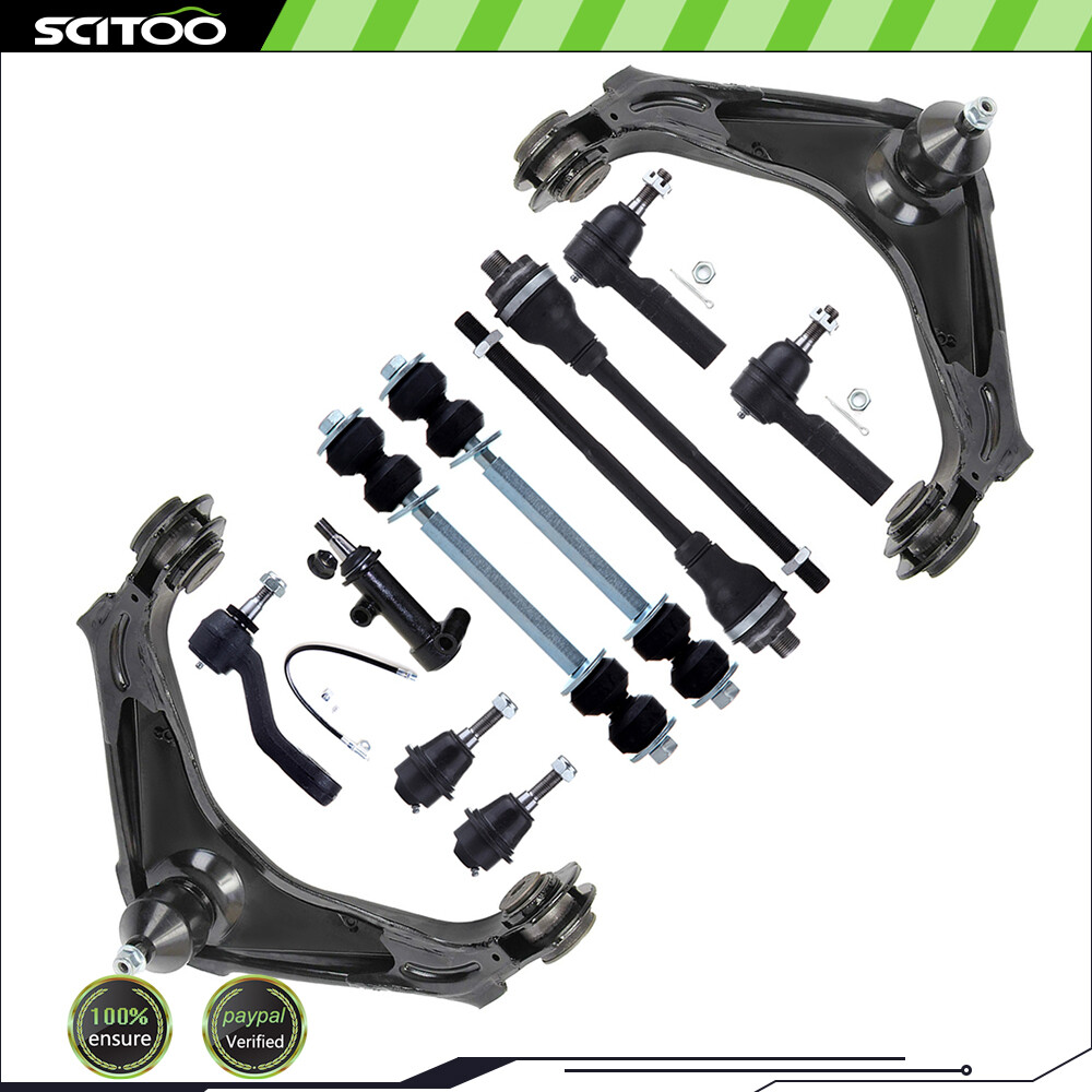 Fit for 2002-2006 Chevrolet Avalanche 2500 2001-2006 Chevrolet Silverado 1500 HD 2001-2004 Chevrolet Silverado 2500 2001-2010 Chevrolet Silverado 2500 HD 2001-2006 Chevrolet Silverado 3500 2007-2010 Chevrolet Silverado 3500 HD 2001-2010 Chevrolet Suburban 2500 2001-2006 GMC Sierra 1500 HD 2001-2004 GMC Sierra 2500 2001-2006 GMC Sierra 3500 2001-2010 GMC Sierra 2500 HD 2008-2010 GMC Sierra 3500 HD 2001-2010 GMC Yukon XL 2500 2003-2007 Hummer H2 Package Includes: Upper Ball Joints come Pre-Assembled onto the Control Arms 12pcs For Chevy GMC Control Arm Ball Joint Sway Bar Pitman Idler Arm Tie Rod End Fit for 2002-2006 Chevrolet Avalanche 2500 2001-2006 Chevrolet Silverado 1500 HD 2001-2004 Chevrolet Silverado 2500 2001-2010 Chevrolet Silverado 2500 HD 2001-2006 Chevrolet Silverado 3500 2007-2010 Chevrolet Silverado 3500 HD 2001-2010 Chevrolet Suburban 2500 2001-2006 GMC Sierra 1500 HD 2001-2004 GMC Sierra 2500 2001-2006 GMC Sierra 3500 2001-2010 GMC Sierra 2500 HD 2008-2010 GMC Sierra 3500 HD 2001-2010 GMC Yukon XL 2500 2003-2007 Hummer H2 Package Includes: Upper Ball Joints come Pre-Assembled onto the Control Arms 2 x Part # Front Upper Control Arm and Ball Joint Assembly 2 x Part # Front Lower Ball Joint 2 x Part # Outer Tie Rod End 2 x Part # Inner Tie Rod End 2 x Part # Front Stabilizer Bar Link Kit 1 x Part # Idler Arm Bracket Assembly 1 x Part # Pitman Arm(With 3 Grooves) 10 Year Warranty Please check above compatibility list to make sure it fits your vehicle. 12pcs For Chevy GMC Control Arm Ball Joint Sway Bar Pitman Idler Arm Tie Rod End Fit for 2002-2006 Chevrolet Avalanche 2500 2001-2006 Chevrolet Silverado 1500 HD 2001-2004 Chevrolet Silverado 2500 2001-2010 Chevrolet Silverado 2500 HD 2001-2006 Chevrolet Silverado 3500 2007-2010 Chevrolet Silverado 3500 HD 2001-2010 Chevrolet Suburban 2500 2001-2006 GMC Sierra 1500 HD 2001-2004 GMC Sierra 2500 2001-2006 GMC Sierra 3500 2001-2010 GMC Sierra 2500 HD 2008-2010 GMC Sierra 3500 HD 2001-2010 GMC Yukon XL 2500 2003-2007 Hummer H2 Package Includes: Upper Ball Joints come Pre-Assembled onto the Control Arms 2 x Part # Front Upper Control Arm and Ball Joint Assembly 2 x Part # Front Lower Ball Joint 2 x Part # Outer Tie Rod End 2 x Part # Inner Tie Rod End 2 x Part # Front Stabilizer Bar Link Kit 1 x Part # Idler Arm Bracket Assembly 1 x Part # Pitman Arm(With 3 Grooves) 10 Year Warranty Please check above compatibility list to make sure it fits your vehicle. Item Specifics Placement on Vehicle Front Left Right Upper Lower Type Control Arm & Ball Joint Assembly Universal Fitment No Control Arm Construction Forged Items Included Mounting Hardware Custom Bundle Yes Interchange Part Number Suspension Kit,ES3488,K80631,ES3609,K6693,K620054,K6654,K6723 Cotter Pin Hole Yes Bundle Description Suspension Control Arms and Ball Joints Kit Assembly Superseded Part Number tie rod replacement,stabilizer bar,ball joint car,suspension arm Manufacturer Warranty 10 Year Brand SCITOO Manufacturer Part Number CN801510B01 Adjustable Yes Modified Item Yes Kit or Single Part Kit OE Spec or Performance/Custom OE Spec Surface Finish Polished, Rust Protected Quantity 12Pcs Greasable or Sealed Greasable Universal Fitment No Material Alloy Steel Mounting Style Bolt-On Performance Part No Finish Coated Features Greasable Finish Coated Cotter Pin Hole Yes Material Alloy Steel Mounting Style Bolt-On Shipping 1. Package handling takes about 2 business days at our warehouse, so please make sure entering correct payment and shipping information before checking out. Once your payment is completed, we are not going to accept any more changes to your order. 2.All domestic orders will be shipped via USPS, UPS or Fedex from our US warehouse and usually arrives to your door in about 2-7 business days. 3.Local pick up is not available. 4. International Buyers C Please Note: a. Import duties, taxes and charges are not included in the item price or shipping charges. These charges are the buyers responsibility. b. Please check with your country customs office to determine what these additional costs will be prior to bidding/buying. ] Payment 1.We accept multiple payment methods, such as PayPal, VISA, Master Card, etc.. 2.Please do not use the PayPal note field to indicate us to ship to other address. The note there will NOT be read. If you want to change the shipping address, please contact us by eBay messages. 3.(if you want cancel orders or change address pls contact us within 6 hours after payment,or we are not responsible for shipping a replacement.) 4.Payment must be received within 7 days as auction ended or order might be delayed. Returns 1.All of our brand new items come with a 60-Days money-back guarantee. 2.We define the item as defective only if it doesn't function as described, It is the buyer's responsibility to understand the item description before bidding. 3.We will replace the defective items, provided that they are in stock within the warranty period posted with the listing and the buyer return the original item and pay for the S&H cost for the replacement. 4.We will refund the purchase price if the replacement is not available or buyer prefers a refund and send the original item back at his/her own cost. 5.Shipping& handling cost are not refundable. 6.Man-made damage by abuse or wrong operation is not covered by this warranty. 7.No product liability insurance is assumed. 8.Refunds will be credited within 5 to 7 business days of receiving the return. When we've received and processed the return, we will refund the applicable amount minus any Recovery Fees (See Details Below) for the amount you paid for the item(s), plus any applicable sales tax. ] Customer Services Q: How do I pay for my purchase? A: MY store accepts PayPal, VISA, Master Card, etc. . Q: When will the item be shipped out? A: This item will be shipped with 2 business day once payment completed. Q: Where is my tracking number? A: Please log on your account, click "my eBay"-->"my summary", or open y