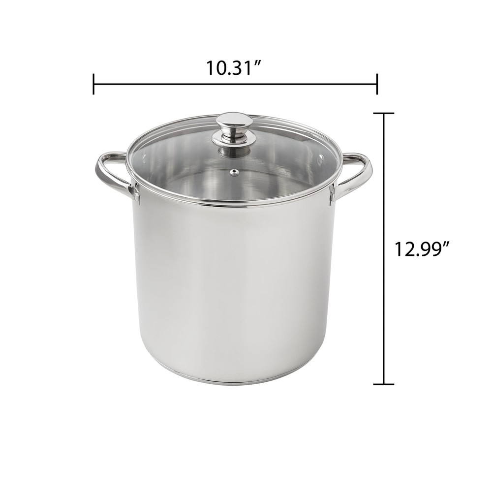 You may also like 3 Piece Non-Stick Sauce Pans Set Lightweight Dishwasher Safe Quick Heating New 16.76 USD 17.64 USD Free shipping 5% off Stainless Steel 8-Quart Multi-Cooker W/ Glass Lid Stock Pot Steamer Basket New 28.46 USD 29.96 USD Free shipping 5% off 12QT Enamel Steel Stock Pot Durable Kitchen Essential Soups Stews Stocks New 53.16 USD 55.96 USD Free shipping 5% off Prepare amazing sauces, soups, pastas, and more with the sizable Mainstays Stainless Steel 12-Quart Stock Pot with Glass Lid. This large stock pot measures 10. 04”L x 10. 04”W x 9. 64”H. Perfect for cooking family meals for any occasion. Designed with stylish stainless steel and glass, it’s sure to coordinate with your existing cookware. This sturdy stock pot features stay-cool handles, transparent glass lid, durable stainless steel construction and is induction safe. Ideal for helping you feed your family and friends at get-togethers, backyard barbecues, celebrations, and other special events. The Mainstays Stainless Steel 12-Quart Stock Pot with Glass Lid is a must-have cookware item in any kitchen. Sizable stock pot is perfect for preparing amazing sauces, soups, pastas, and more Dimensions: 10. 04”L x 10. 04”W x 9. 64”H Weight: 4. 04 lbs Induction Safe Materials: Stainless steel, glass Ideal for cooking for large gatherings as well as smaller groups Features stay-cool handles, transparent glass lid, and stainless steel construction Dishwasher safe. Wash before first use. Do not boil dry. Do not use cookware on high heat or high flame; use medium or lower heat settings. Match base of pan to stove burner size. High heat, high flame, or boiling dry can cause cookware to turn black or red. Handles and knobs may warm during heating. It is recommended to use oven mitts or pot holders when handling Stylishly designed to coordinate with your existing cookware Features: Induction Compatible Brand: Mainstays Cleaning, Care & Maintenance: Dishwasher safe. Wash before first use. Do not boil dry. Do not use cookware on high heat or high ames; use medium or lower heat settings. Match base of pan to stove burner size. High heat, high flames, or boiling dry can cause cookware to turn black or red. Handles and knobs may warm during heating. It is recommended to use oven mitts or pot holders when handling Assembled Product Dimensions (L x W x H): 10. 32 x 9. 54 x 10. 32 Inches You may also like 3-Piece 6-1/2 Inch Circular Saw Blades Durable Heavy-Duty Wood Cutting Set New 14.88 USD 15.66 USD Free shipping 5% off 9-Piece 1/2" Drive Metric Deep Socket Set Rail Storage 17-24mm Chrome Vanadium 28.33 USD 29.82 USD Free shipping 5% off 32" Bluetooth Soundbar Roku TV Compatible 160W Peak Output Remote Included New 38.57 USD 40.6 USD Free shipping 5% off Solar LED Rope Light Color Changing Indoor Outdoor Easy Install Remote New 28.44 USD 29.94 USD Free shipping 5% off 8 Piece BPA-Free Bowl Set W/ Airtight Lids Microwave Freezer Dishwasher Safe New 28.46 USD 29.96 USD Free shipping 5% off 4-Tier Expandable Stackable Shoe Rack Metal Organizer Storage 20 Pairs New 25.34 USD 26.67 USD Free shipping 5% off 6-Bin Toy Organizer Child Store Solid Wood Fabric Princess Crown Girl Gift Pink 33.22 USD 34.97 USD Free shipping 5% off Paper Towel Holder Jumbo Rolls Rustproof Aluminum Tension Arm Kitchen Organizer 22.85 USD 24.05 USD Free shipping 5% off Wicker Storage Baskets Set of 2 Natural Hyacinth W/ Dividers Organization New 26.92 USD 28.34 USD Free shipping 5% off Dachshund Ceramic Bone Treat Jar Food Storage Container 9" Tall Dishwasher Safe 42.9 USD 45.16 USD Free shipping 5% off 7 Pcs Bed in a Bag Sets Reversible Queen Soft Comforter Bedding Machine Washable 49.15 USD 51.74 USD Free shipping 5% off 13.2 Gal Step Trash Can Stainless Look Silver Flair Noise-Free Touchless New 45.83 USD 48.24 USD Free shipping 5% off