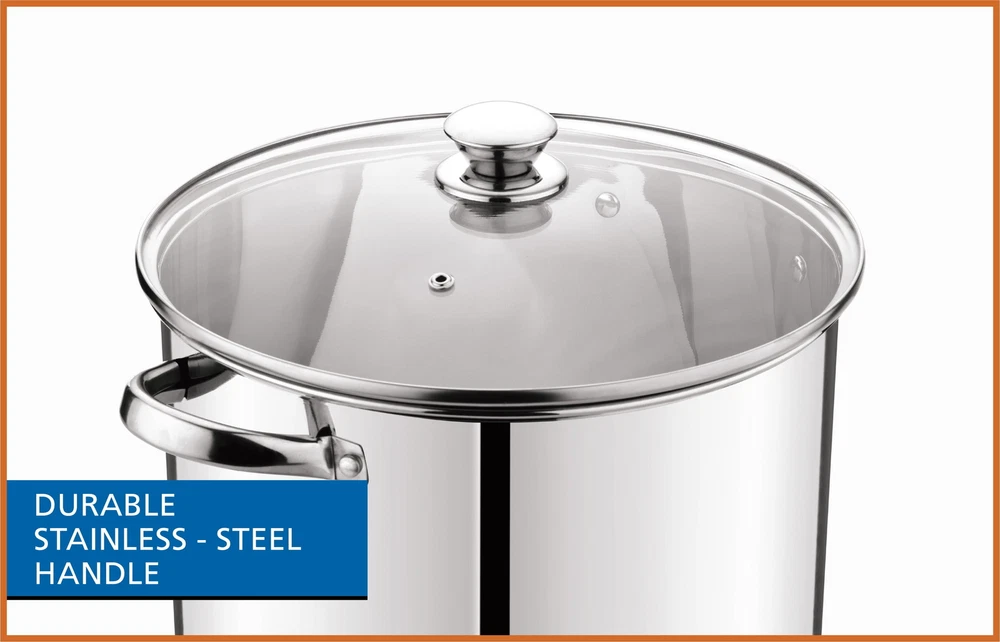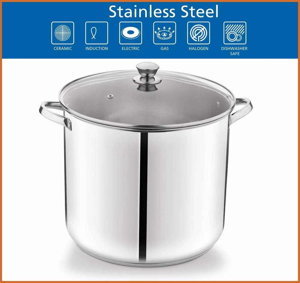 This stock pot is a game-changer for home cooks! The sturdy stainless steel heats up evenly, and the glass lid lets you monitor dishes without lifting. Perfect for big batches of soups, sauces, or pasta—cleanup is a breeze too. The comfortable handles stay cool, and it feels surprisingly lightweight for its size. At this price, it's an absolute steal for how versatile and durable it is. Makes meal prep so much easier!