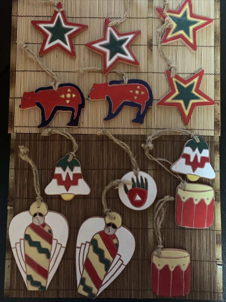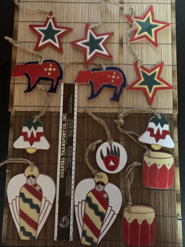 Celebrate the holiday season with these 13 beautiful Southwest Design Christmas Ornaments from Hill Country Imports. Crafted with redware and clay, these hand glazed terra cotta ceramics feature a variety of patterns and shapes in multicolor, making them perfect for any Christmas tree. The ornaments are vintage and handmade, adding a unique touch to your collection. The set includes Southwest Ornaments, each featuring a different design inspired by Native American Southwest decor. These Christmas ornaments are perfect for any department and come with a hanging feature for easy display. Add these ornaments to your collection and enjoy the beauty they bring to your holiday decor.