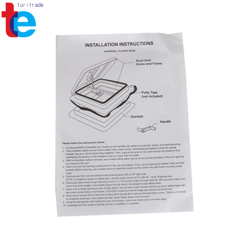 Description: BBBestparts Visit my Store to see new items that you like 14" RV Trailer Roof Vent Complete 12V Fan w/ Tape White Lid Interior Garnish Description: The roof vent is 14 inch long and 14 inch wide and fits roofs with 1-1/4 inch to 2-1/4 thick. Insert vent in rough opening on top of putty steips. Use an awl or nail to locate and line up corner drilled holes with the corner screw holes in vent frame. Great for RV, Campers, Travel Trailers, Caravan, & Motorhome: Some recreational vehicles may not have roof vents mounted and All-weather use is important especially during summer or rainy days to keep the rain out and let fresh air circulating in your RV. RV Roof Vent with Fan: Roof vents keeps recreational vehicles ventilated which also keeps the air flow inside your RV fresh and clean as outdoor air circulates in and out. Roof vents with reversible fans helps the RV interior to last longer, and pulls away any bad odor inside the vehicle while bringing clean air. Simple installation with 2-wire design,White interior trim piece (or garnish) and screws are included for installation. The kit includes printed instructions for a proper installation. You can run it while driving, rainy days or as a ceiling fan with the lid closed. You don't even need to worry even on rainy days as there is airflow in this specially designed RV roof fan even when the lid is closed. Instruction Included Fitment: Fit For RV, Trailer, Camper, and 5th Wheel 14" 12V Powered Roof Vent Package includes: 1X Roof Vent Cover Just as pictures show Payment Shipping Product will be shipped within 3 business days after full payment is received and verified. Delivery Time is about 3-7 business days to most of countries. All domestic orders will be shipped via USPS or FedEx from our US warehouse and usually arrives to your door in about 3-5 business days. We ship the package to your shipping address in eBay instead of the one in PayPal. Please tell us your shipping address if it is different from the one in eBay. The tracking number will be given for the customer to check the shipping status online (registered or faster service only). We are not responsible for any wrong or undeliverable addresses. Please verify and update your shipping address on eBay during checkout. Returns Please contact us first when return, exchange and refund is required. Any direct return of purchased items will not be processed. Change-of-mind return can only be accepted within 7 days after purchase. All other returns can be accepted in 30 days. We will closely examine the condition of the returned items and will not issue any refund/exchange before we make sure the items are in their original neat conditions. Contact Us Our office hours are every day except Sunday, but the processing time is uncertain, we will process your problem on the same day, And our office is closed on Sunday and we apologize for the late reply during the holidays. Feedback & Customer Services If you encounter any problems about anything, please feel free to contact us and we will do our best to assist you solve the issue. If you are not satisfied in anyway, please feel free to let us know and give us a second chance to correct it before you decide to leave any neutral or negative feedback. BBBestparts Visit my Store to see new items that you like Home Page Search Store Shop Category Store Home Suspension & Steering Lighting & Lamps ◈ Fog Lights ◈ Xenon Headlight Ballast ◈ Headlight ◈ Fog Lamps cover ◈ Turn Lights ◈ Brake Lights ◈ Moto Lighting & Lamps ◈ Others ◈ Tail light Boat ◈ Steering Shaft Pin ◈ Yacht Light ◈ Others Carburetor ▷ Lawn Mowers Carburetor ♢ carburetor ◈ String Trimmers Carburetor ◈ Blower Carburetor ◈ Snow Blower Carburetor ◈ Saw Carburetor ◈ Tractor Carburetor ◈ Motorcycle Carburetor ◈ ATV Carburetor ◈ Automobile Carburetor ◈ Gasket kit ◈ Others ◈ Golf Carburetor ◈ Rebuild kit ◈ Intake Manifold Boot Auto Valve ◈ Pressure Relief Valve ◈ Air Idle Valve ◈ VVT Valve ◈ Transmission Solenoids ◈ Control Valve ◈ Valve Body ◈ EGR Valve ◈ Others Motorcycle Valve ◈ Motorcycle Solenoid Valve ◈ Others Module ◈ Headlight Driver Module ◈ Fuel Pump Module ◈ Fan Control Module ◈ Others Fuel Injector Home & Garden ◈ Health & Beauty ◈ Sports Goods ◈ Yard, Garden & Outdoor Living ◈ Others Business & Industrial ▷ Industrial Control Module ♢ Other ▷ CNC ♢ Drill Chuck Arbors ♢ Drill Chuck ♢ Live center ♢ Collet Chuck ♢ Quick Change Tool Post ♢ Milling Arbor ♢ Pull Stud ♢ Reamer ♢ Drill Bits ♢ Spring Collet ♢ other ♢ Edge finder ♢ Blocks ♢ Vise ♢ Boring Bar ♢ Mandrel ▷ Metalworking Supplies ♢ Sanding Disc ♢ Metal Cut Off Wheels ♢ Flap Discs ♢ Hose Clamp ♢ Welding Wire ♢ Drill Bits ♢ other ▷ Hand Tools ♢ Rivet Gun ♢ Wrenches ♢ Hydraulic Crimper ♢ other ♢ Casters ▷ Generator Accessories ♢ Automatic Voltage Regulator ♢ Generator Carburetor ♢ Other Brakes & Brake Parts ◈ Brake Master Cylinder ◈ Clutch & Clutch Parts ◈ Motorcycle Hand Brake Handle ◈ Motorcycle Brake Cable ◈ Motorcycle Brake Pads ◈ Others Car Repair Kit Auto Engine System ◈ Valve Cover & Gasket ◈ Oil Cooler ◈ Engine Timing Cover ◈ Thermostat ◈ Turbine Cover ◈ Valve Push Rod ◈ Engine Coolant Recovery Tank ◈ Glow Plug ◈ Filter Housing &Accessories ◈ Tilt Trim Motor ◈ Engine Rocker Arm Shaft Sleeve ◈ Oil Scale ◈ Coolant Water Inlet Pipe ◈ Others Auto Ignition System ◈ Spark Plug ◈ Car Ignition Coil ◈ Spark Plug Protective Cover ◈ Ignition Switch ◈ Car Ignition Module Auto Hub ◈ Locking Hub ◈ Hub Bearing ◈ Others Motorcycle Ignition System ◈ Motorcycle Ignition ◈ Motorcycle Ignition Coil ◈ Motorcycle Fuel Switch ◈ Motorcycle Hand Plate ◈ Motorcycle Ignition Switch ◈ Motorcycle Starter Fitting ◈ Motor Electromagnetic Starter ◈ Others Motorcycle engine system ◈ Piston Cylinder Fittings 