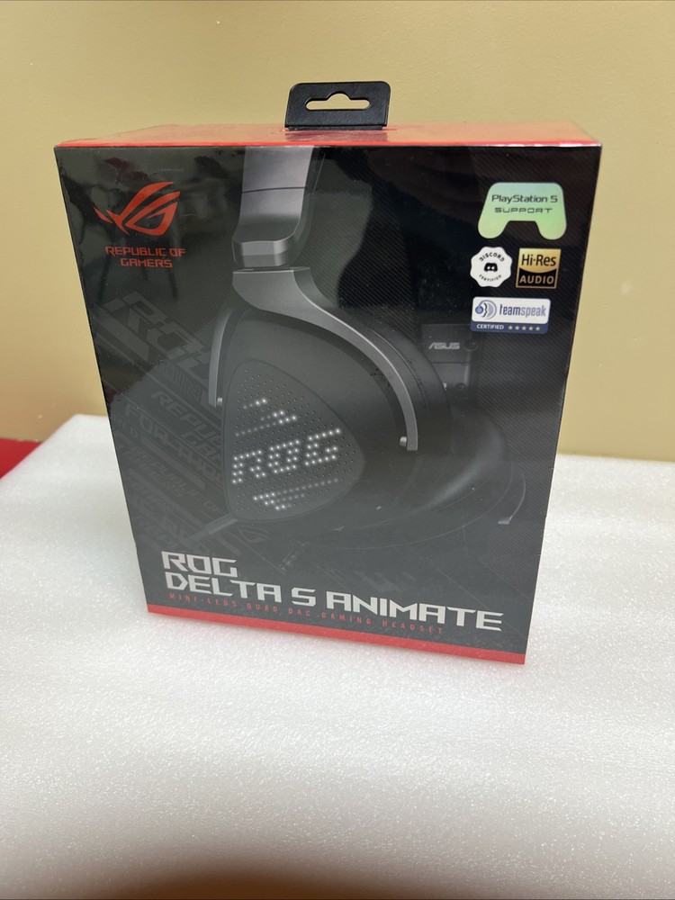 The #1432 ROG Delta S ANIMATE Headset Wired is an over-the-ear headphone from the 1100 series, featuring a sleek black design. It is equipped with a USB connectivity option and is ideal for use in the consumer electronics market, specifically for portable audio and headphones.