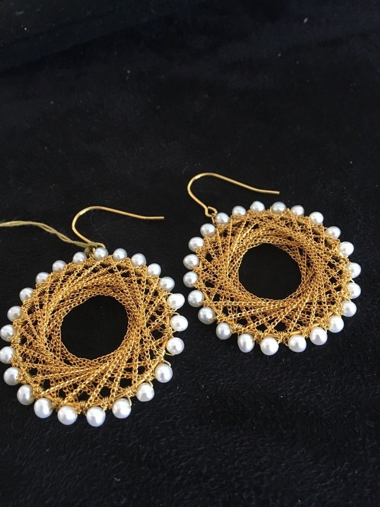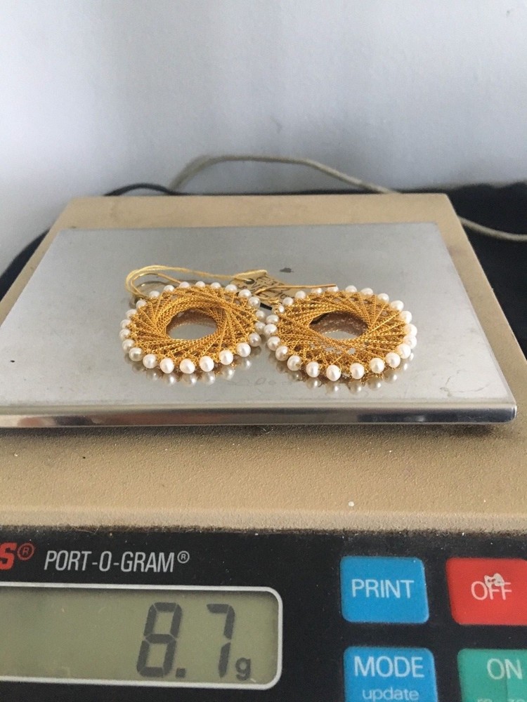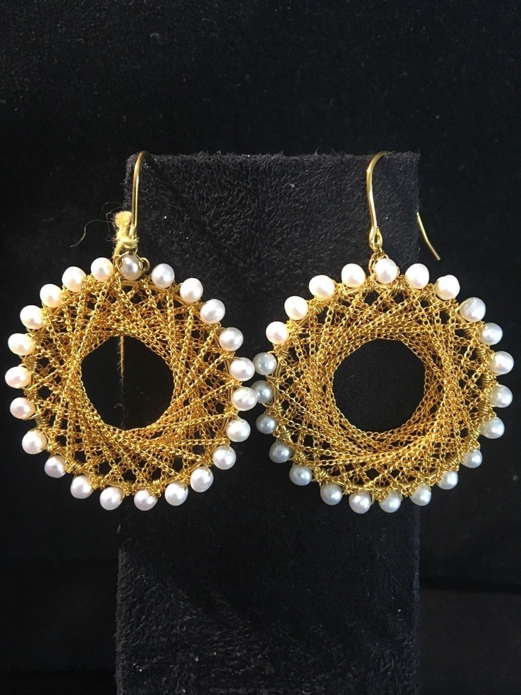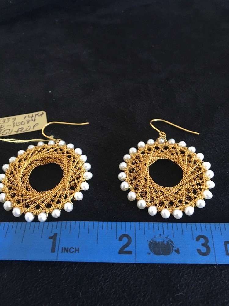THIS PAIR OF ABSOLUTELY STUNNING 14KT YELLOW GOLD & FRESH WATER PEARL HOOP EARRINGS ARE FROM DESIGNER CHINA PEARL IMPORTS. THE EARRINGS ARE BRAND NEW WITH TAGS. MODEL #VE-10084. THE EARRINGS HAVE APPROX 24 FRESH WATER PEARLS ON THE OUTER BOARD OF A 1 1/4" ROUND HOOP. THE INTERIOR OF THIS BEAUTIFUL HOOP IS DELICATELY DESIGNED WITH MULTIPLE TWISTED INTERWOVEN GOLD CHAIN. THE APPROX WEIGHT OF THESE FABULOUS EARRINGS IS APPROXIMATELY 8.7 GRAMS. FISH HOOK BACK. THE SUGGESTED RETAIL FOR THESE BEAUTIFUL EARRINGS IS $450.00 WILL ONLY SHIP IN THE UNITED STATES. NO POST OFFICE BOXES ACCEPTED. ALL SALES FINAL.