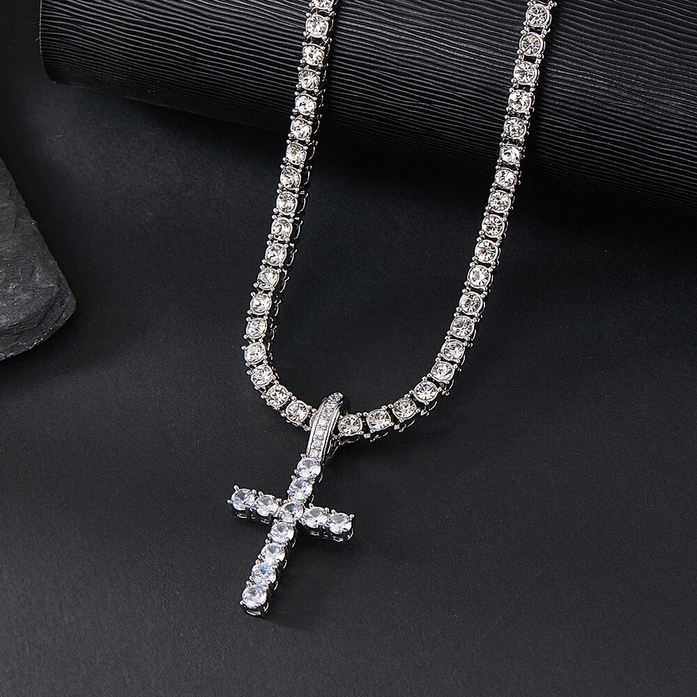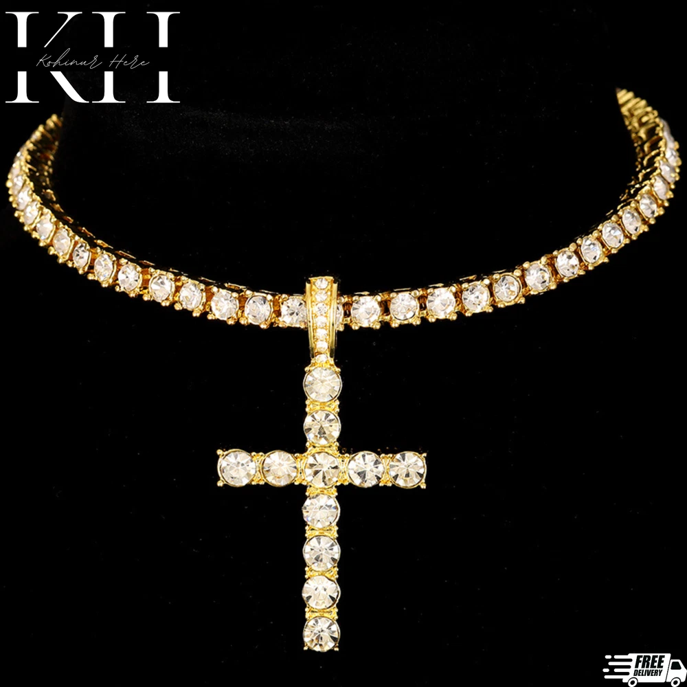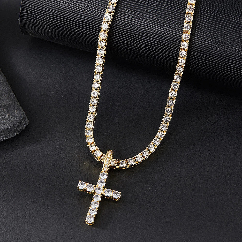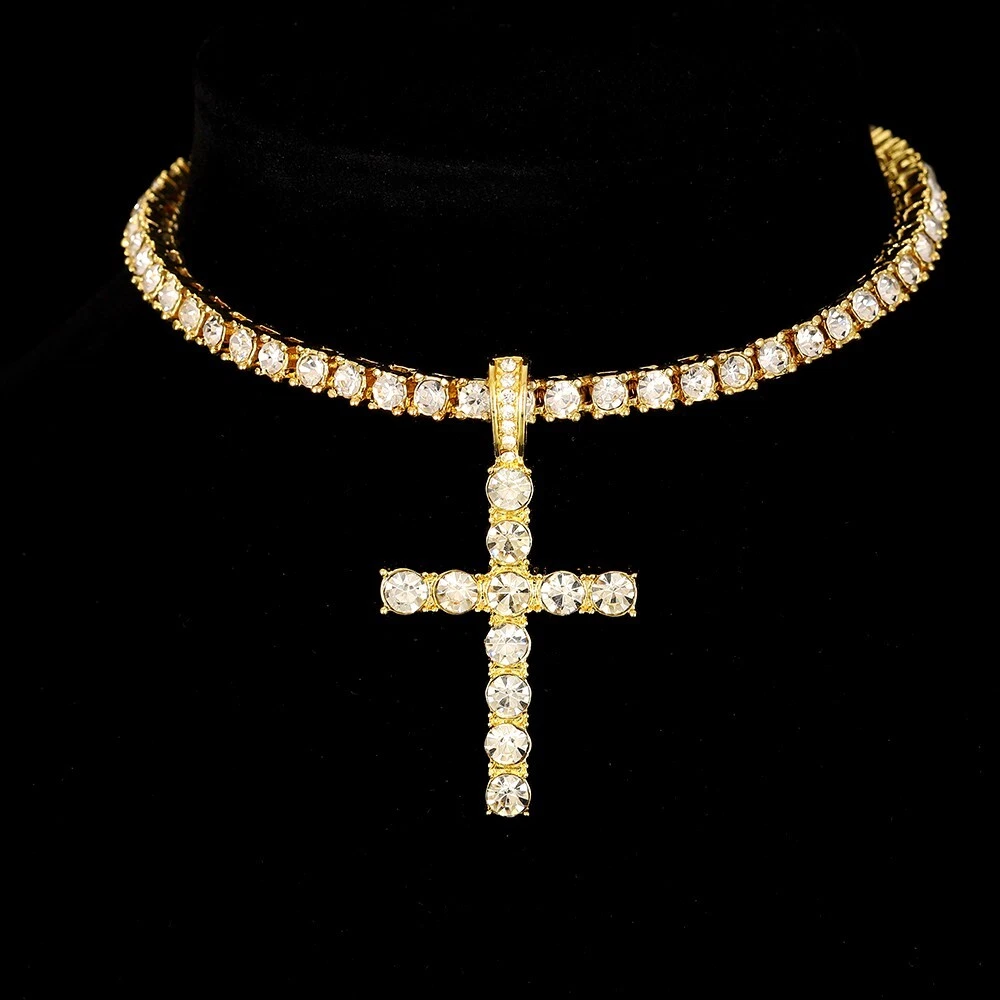 14k Gold Silver Plated Tennis Chain Choker ICED CZ Necklace with Cross Pendant Contact us We can be contacted at any time through eBay messages if you have any questions, comments, or product requests. We will respond to you within 24 hours and do our best to help you out! We encourage our customers to contact us with any questions or concerns! We'd like to be sure you are completely satisfied with your purchase. Payment We accept almost every type of payment. Shipping Shipping is FREE to all addresses other than APO/PO boxes in the lower 48 states. Our stock all ships from our Own warehouses. Shipped via USPS or UPS (depending on location and package weight) Unless stated otherwise, all orders will ship within 7 days of your payment being processed. Check our feedback to see the great reviews of FAST shipping we offer. We have many different shipping locations depending on the product you buy and the shipping location that you choose. We try to ship most items within 24 hours of payment Monday-Friday. Most orders are in transit for two days but some may take longer. If you have a specific time frame please contact us before you make the purchase. Return Policy We stand behind our products. Items can be returned for exchange or full refund within 30 days from the date you receive your merchandise. We are not responsible for any purchase after this 30-day period. Return shipping is the responsibility of the buyer unless the return is a result of our mistake. We will pay for shipping replacement back to you if an exchange is requested. If you have any questions please contact us through "Ask seller a question" link. We will respond within 1 business day or less. All returns must be done within 30 days of the date of purchase. Please note that we cannot give refunds after the 30-day limit has expired. When sending in a return, please note that it can take up to 7 business days for the return to be processed. We do our best to process as quickly as possible. Thank You for shopping with us. Shop: KH