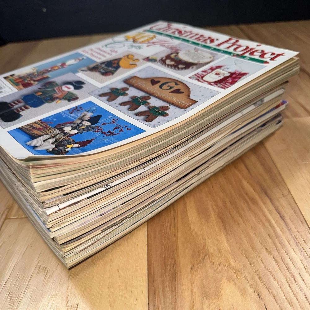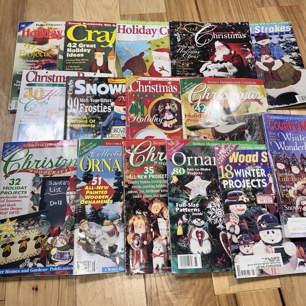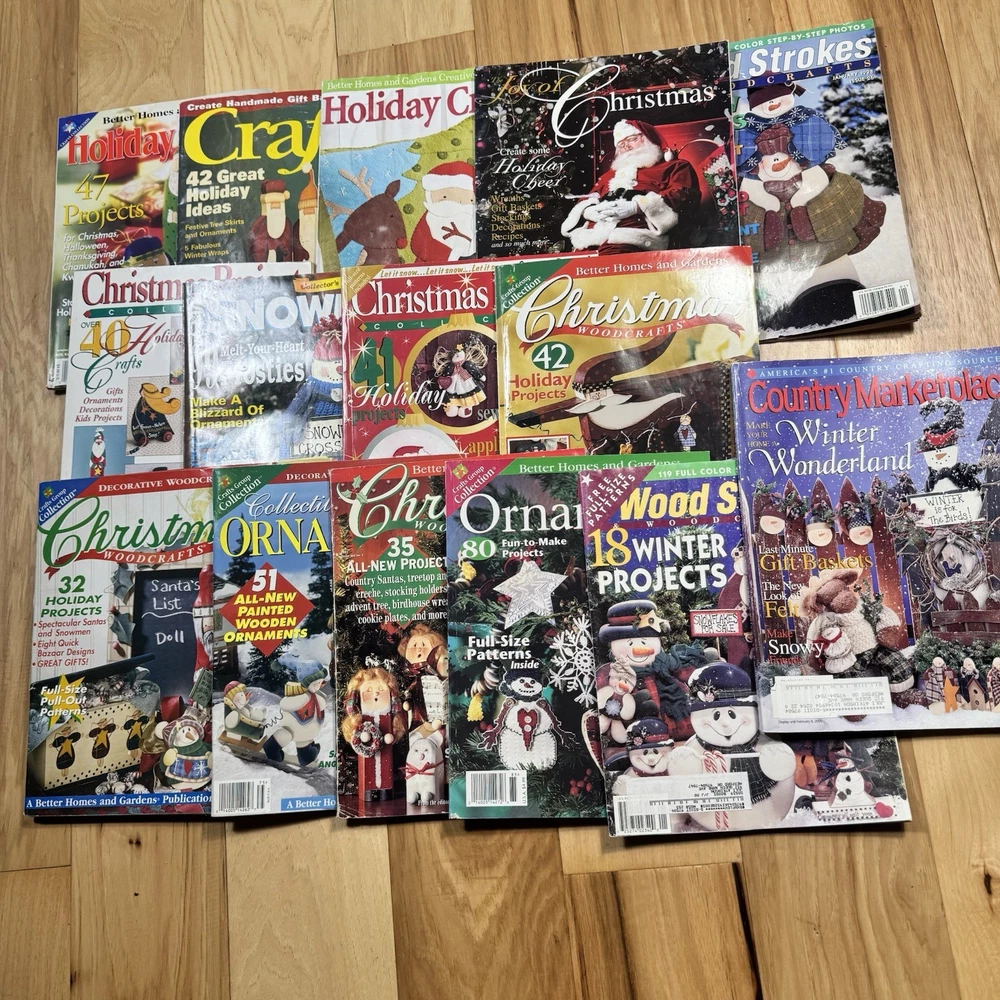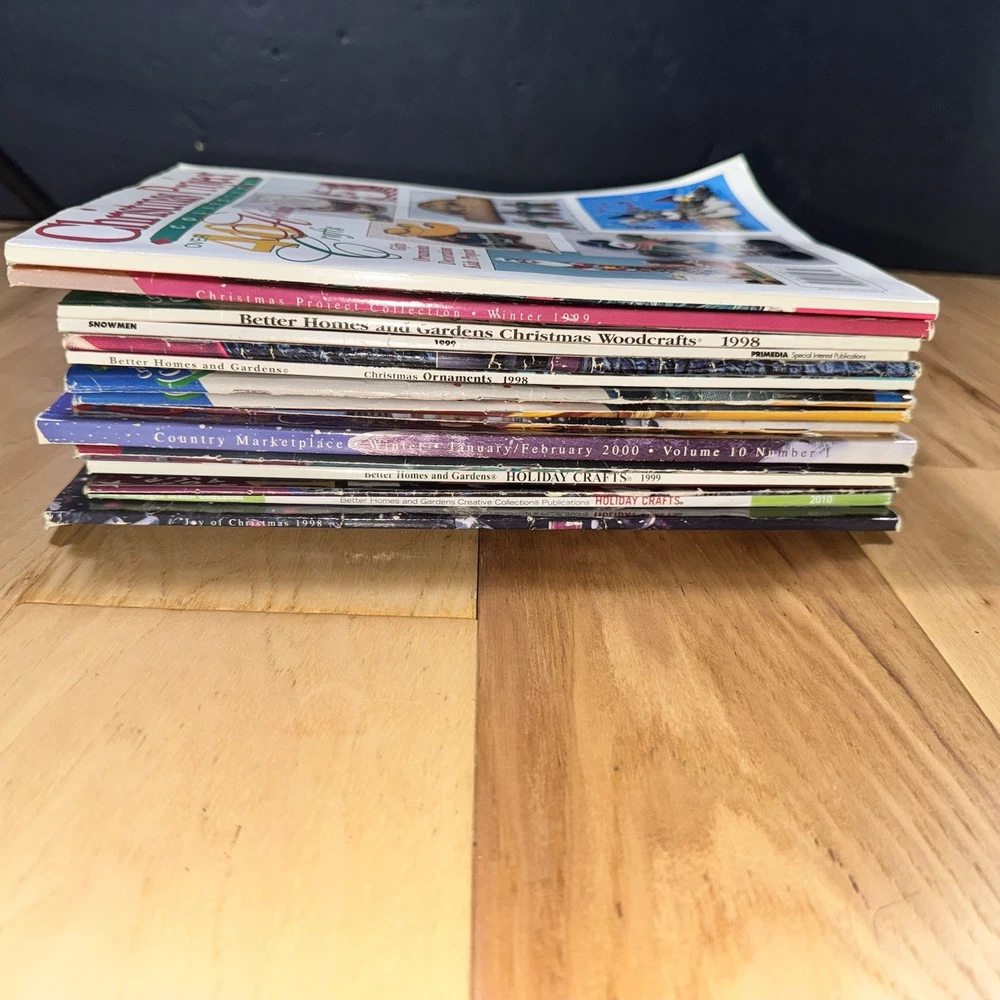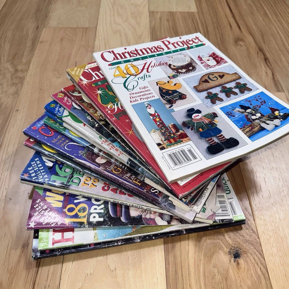 This is a mixed lot of 15 craft magazines (Christmas & winter crafts). They includes patterns, tips , craft ideas , and so much more! Some wear from sitting in a box for many years. Also there are minor tears in some pages- these are in pre-owned condition. See photos.