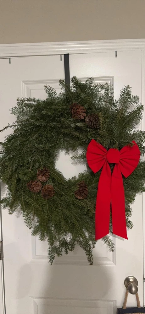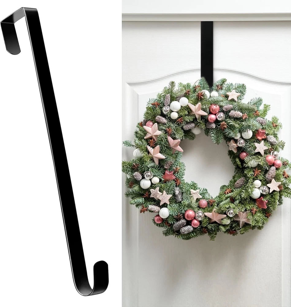 High quality steel,the surface treatment is very smooth and clean, lightweight and perfectly thin Sturdy,durable,hard to bend,will not damage the door and the door frame Hook can hold up to 10LBS,no longer need to worry about wreath falling Size15"*2"*1",The perfect long length is suitable for most doors Our over the door hanger is suitable for hanging wreath and decorations of Christmas,Halloween,Easter,Thanksgiving and all Holidays