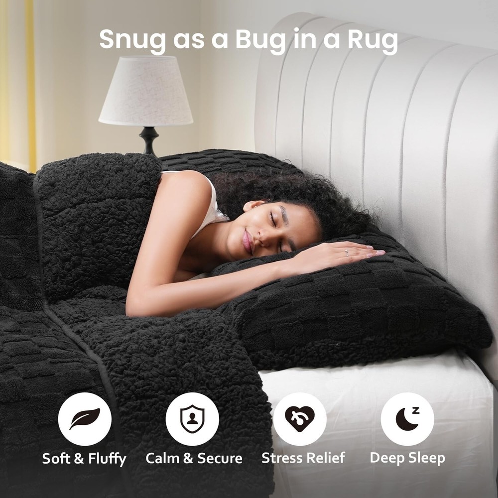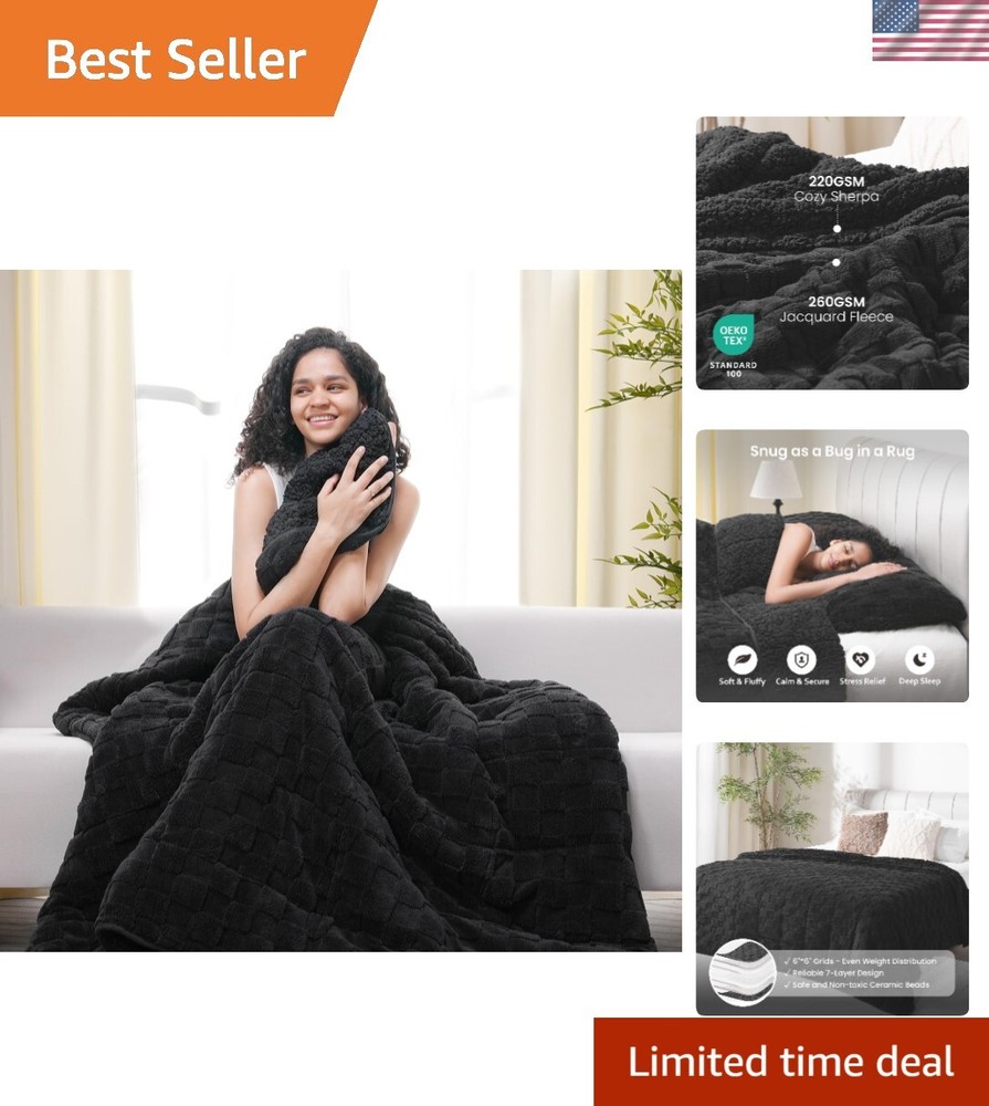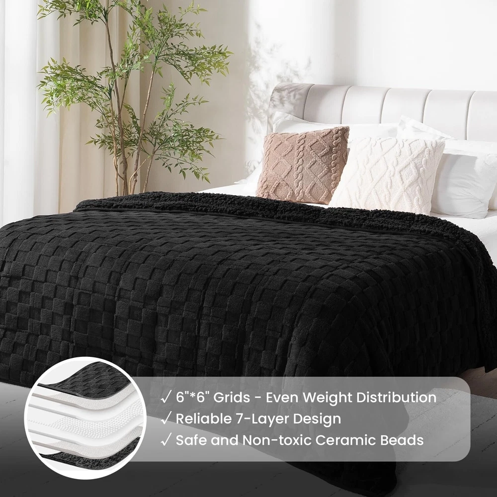15lbs Refreshing Weighted Blanket - Twin Size with Soft Sherpa & Elegant Design ‹ › ‹ › ‹ › ‹ › ‹ › ‹ › ‹ › ‹ › ‹ › 15lbs Refreshing Weighted Blanket - Twin Size Indulge in the ultimate sleep experience with our elegantly designed weighted blanket, featuring a soft Sherpa surface. Embrace the tranquility that comes from consistent pressure, akin to a gentle hug, enveloping you in serene comfort. Features: Embrace Blissful Sleep: Experience peaceful slumber free from tossing and turning, as the blanket cradles you in cloud-like softness, fostering a warming atmosphere. Double-Sided Luxury: One side is adorned with 220GSM warm and plush Sherpa, while the other features a textured turtle-back fleece or an elegant jacquard checkered pattern. Perfectly complements any home decor. Superior Craftsmanship: The 7-layer design with high-density stitching ensures ultra-fine ceramic beads are evenly distributed within each 6" x 6" pocket, preventing shifting or leakage. Eco-Friendly Design: Our dyeing process maintains vibrant colors while being gentle on the environment, ensuring a long-lasting and beautiful product. Customized Comfort: Recommended weight is 8% to 12% of your body weight. Start lighter for those new to weighted blankets, allowing yourself to adjust comfortably. Easy Maintenance: Spot clean for minor stains or machine wash in cold water to keep your blanket fresh. Versatile Usage: Ideal for relaxation at any time—watching movies, reading, or meditating—enhancing focus and tranquility. Why Choose Our Weighted Blanket? Transform your sleeping experience into a haven of luxury and comfort. Our 15lbs Refreshing Weighted Blanket is meticulously crafted to marry aesthetic elegance with unparalleled quality. It's not just about sleep; it's about creating a sanctuary—a place to unwind, relax, and rejuvenate. Invest in your well-being and elevate your home decor with this exquisite weighted blanket. Experience the difference of quality sleep and order yours today! Shipping Free & Fast Shipping - We offer free shipping to most of the USA with a normal delivery time of 3-7 days. However, due to the current situation, additional delivery time (up to 3 weeks) may be required for some items. Alternative Carriers - We may use alternative carriers (e.g. USPS, FedEx, UPS, etc.) to ensure your package arrives safely and on time. Due to the use of multiple carriers, we are unable to provide a tracking number automatically. Handling Time - Orders are processed and shipped within 1-2 business days of receiving cleared payment. Shipping Restrictions - Shipping to Alaska, Hawaii, Puerto Rico, Guam, and other US territories may incur shipping charges or delivery restrictions. Please contact us before ordering, or your order can be refunded/cancelled. State Restrictions - There may be restrictions based on your state of purchase. For example, certain items may not be shipped to California due to state regulations. Contact for Tracking Updates - If you require tracking updates or have any concerns about the delivery of your order, please feel free to contact us, and we will be happy to assist you. Return 30-Day Hassle-Free Returns - We want you to be completely satisfied with your purchase. If you are not, you can return the item within 30 days of receiving it for a full refund or exchange. Easy Return Process - To start a return, simply contact us and we will provide you with a prepaid return shipping label and detailed instructions. Restocking Fee - There are no restocking fees for returns. However, the buyer is responsible for return shipping costs if the return is not due to a seller's error. Refund Processing Time - Refunds will be processed within 5 business days of receiving the returned item in its condition. Payment We accept all major credit cards, PayPal, and Apple Pay for your convenience. Your payment information is secure and encrypted to ensure a safe and seamless transaction. Please complete your payment within 3 days of purchase to avoid any delays in shipping. Feedback Your feedback is extremely important to us. We strive to provide the best products and customer service possible. If you are satisfied with your purchase, please take a moment to leave us a positive review. If you have any concerns or issues with your order, please contact us before leaving negative feedback. We are committed to resolving any problems and ensuring your satisfaction. Contact Us If you have any questions or concerns, please feel free to out to our customer support team. You can contact us through the eBay messaging system. We are available Monday to Friday, 9:00 am to 5:00 pm EST, and we will do our best to respond to your inquiry within 24 hours. Buy it now and enjoy a pleasant shopping experience! Item Width: Weighted Blanket Item Length: Weighted Blanket Unit Quantity: 15 Material: Sherpa,Ceramic Beads Features: Breathable,Weighted,Fluffy,Skin Friendly,Comfortable,Soft Theme: Gift Care Instructions: Machine Wash Department: Adults Room: Bedroom Size: Twin Type: Weighted Blanket Color: Black Pattern: 3d Checkered Style: 3D Checkered Shape: Rectangular Insulation: Warm Closure Type: No Closure GSM (Grams per Square Meter): 160 or More Thread Count: 200 or Less Unit Type: lb