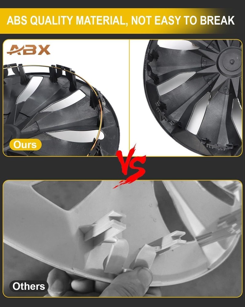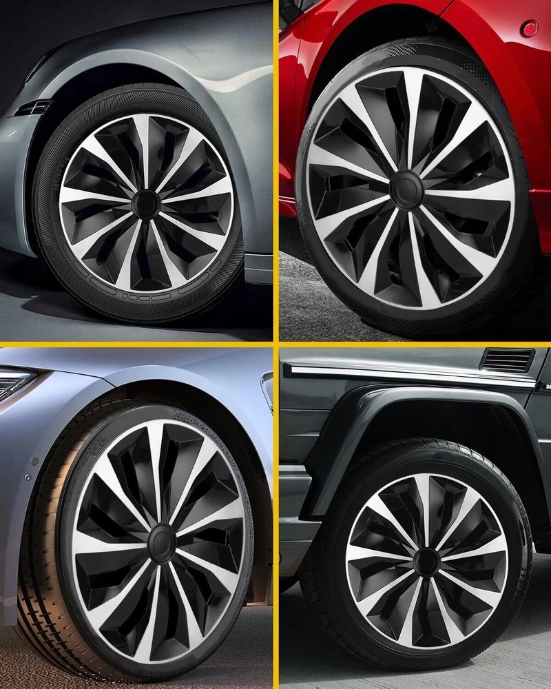 Fitme nt : For most ca rs with steel wheels, design for 16" Steel hubs,NOT for aluminum alloy hubs. Item Features: Make sure you have 16" steel wheels. Measure this by checking the number after the "R" on your tires. It must say R16! Brand new condition, includes four hubcaps, one pair of gloves, four tire valve covers, one screwdriver, four tie-downs and installation instructions Fits perfectly with a factory-quality glossy black finish that adds a stylish look to your vehicle Features premium durable ABS plastic construction Easily and securely mounts to your existing steel wheels Item Specifications: Size: 16 inch Color: Silver+Black Installation Type: Snap-On Model: Universal Hubcap for Iron Wheels Net Weight: 7.2 Pound DESCRIPTION PLEASE MAKE SURE YOU HAVE 16" STEEL WHEELS. Measure by checking the number after the "R" on your tires. IT MUST SAY R16! This pack contains four hubcaps, a pair of gloves, a screwdriver, four suitable tyre valve cores ,Four tie-downs and installation instructions. This product is easy to install, simple and stylish Packing List: 4 X Hub Caps NOTE: (1)It would be highly appreciated if you might contact us first once you have any problems concerning the items. And you can expect all the issues would be resolved ASAP! (2)Please let us know before you send us the neutral/negative feedback that wont help to finish the issues. And I will definitely try my best to provide the best solutions which would meet our satisfactory