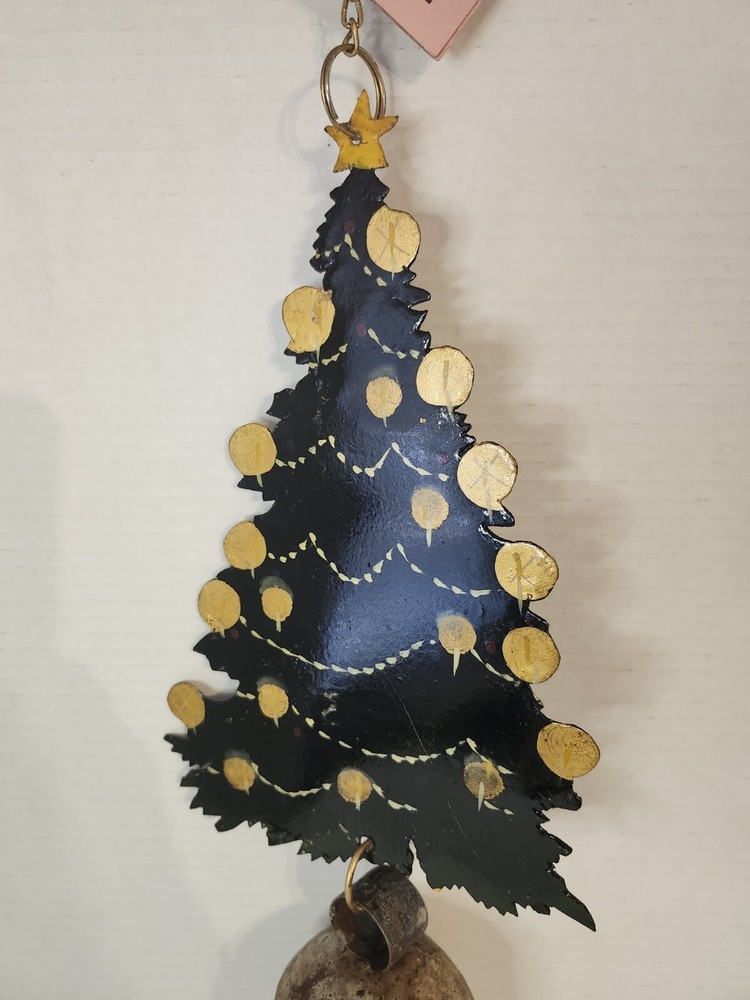 This vintage-style metal Christmas tree with a large bell wind chime is absolutely stunning! The 16" tree and 6" bell create a beautiful, festive display with a gentle, melodic chime. Perfect for holiday decor or as a unique gift—love the rustic charm and quality craftsmanship!