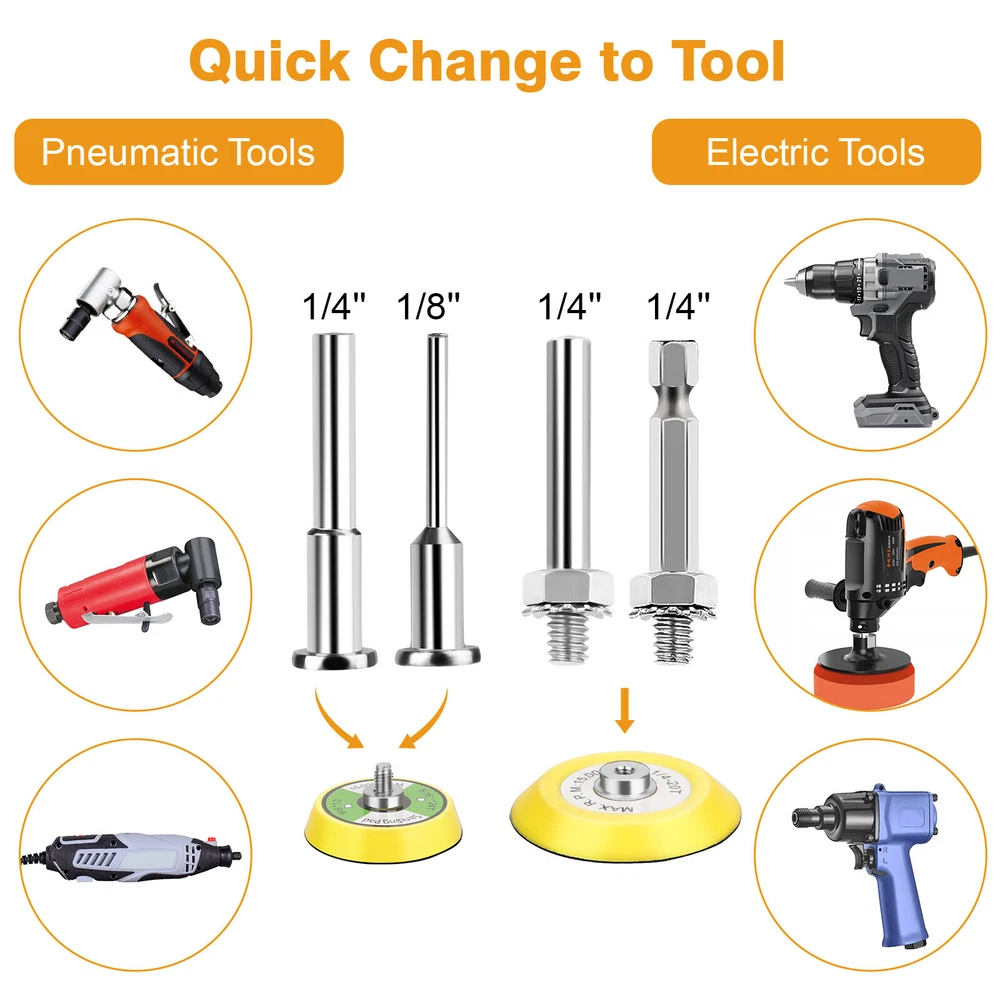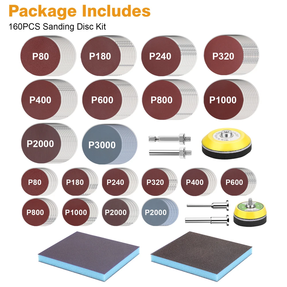 Product Description 160X 2 & 3" Sanding Discs Kit 80-3000 Grit Sandpaper Pads Hook Loop for Drill Feature πAll-in-one Complete Kit: 2 and 3-inch Sanding Discs, 80-3000 Grit to meet diverse needs, ideal for fine detailing work. π2/3-inch Backing Pad and Sandpaper: Matched with each other to handle sanding work more flexibly, finely, quickly, and effectively. πPolishing Attachment for Cordless Drills: A soft, durable sponge pad reduces vibration, noise, and wear on the machine and surface, enhancing comfort and extending the equipment's lifespan. πNo-Clog Sanding Sponge: The sanding block's resilience is excellent, its plasticity is strong, and it is not easy to tear. It is ideal for flat, edged, and contoured surfaces. π3 Types of Shanks: 1/8" (3mm) and 1/4" (6mm) shanks, Round/Hex shank can with any air or electric drill, die grinder, and other rotary tools for the utmost sanding control. πEasy to Use: The hook and loop backing allows for quick attachment and fast switching between sandpapers, saving time during use. πWide Applications: It is ideal for polishing headlights, wood, stone, paint, and mirrors. It suits various surfaces and works great for glass cleaning, car repair, beauty, and detail polishing tasks. Specification Type :Sanding Discs Set Color: Red-brown, Blue Grit Material :Aluminum Oxide Compatible Devices: Die Grinder, Drill, Angle Grinder Grit Type: Coarse to Very Fine 3 Types of Shanks: 1/8" (3mm) and 1/4" (6mm) shanks, Round/Hex shank Sanding Discs Size: 2 and 3-inch Package Included π100 x 3 inch (75mm)P80/180/240/320/400/600/800/1000/2000/3000 Hook Loop Sanding Discs each 10Pcs π50 x 2 inch (50mm) P80/180/240/320/400/600/800/1000/2000/3000 Hook Loop Sanding Discs each 5Pcs π1 x 2 inch/50mm Hook Loop Air-Tool Sanding Disc pad π1 x 3 inch/75mm Hook Loop Sanding Disc pad π1 x 1/4 inch Shank, Round Shank (6.3mm) π1x 1/4 inch shank, Hex Shank (6.3mm) π1 x Internal Thread 1/8 inch Shank (3mm) π1 x Internal Thread 1/4 inch Shank (6mm) π2 x Sanding Sponges π1 x 2 inch(50mm) Black Soft Foam Buffering Pad π1 x 3 inch(75mm) Black Soft Foam Buffering Pad About Us 1. Unless specified otherwise, all our products are IN STOCK and are shipped from USA Local warehouse - Not Overseas! 2. We provide a 30 day Satisfaction Guarantee or your money back (provided items are in the same new and resaleable condition.) 3. We have a PayPal Verified Business Account, please buy with Confidence! 4. Every item will be tesrted before send.We know our products well and if we don't have the answers we will do our best to find them for you! 5. Our friendly team look forward to serving you! Your satisfaction is our No.1 Priority We will do our best to satisfacy you. Payment 1.Paypal, Credit Card, G Pay etc, many payment way is accepted. 2.Please be sure your shipping address is correct before make a payment. Shipping 1.We will ship out the item within 1-3 business days after comfirming the payment, appreciate your patience. 2.If the items are broken on the way(we will check the orders clearly before we sent them),please contact us in 3 days you received it. We will send you a new one or refund your payment. Returns 1.We stand behind every buyer.Items can be returned for exchange or refund within 30 days. 2.Please contact us when you have any confusion of our item, we will solve the trouble for you as soon as possible. Contact Us 1.This is professional Seller.We will reply your message within 24 hours. 2.Please contact us whenever you have any question about the item. We will deal with it as soon as possible. 3. If you are unhappy with the item or our service,please Contact Us before leave feedback,just give me a chance,thank you! You may also like 3PCS Outdoor Solar Wall Light LED Motion Sensor Bright Flood Street Lamp 3 Modes 12.88 USD 13.99 USD Free shipping 8% off Commercial 1000000LM LED Outdoor Dusk to Dawn Solar Street Light Road Area Lampβ 13.29 USD 13.99 USD Free shipping 5% off powered by