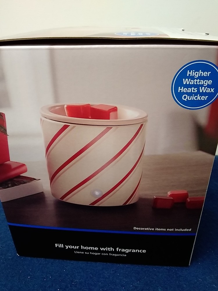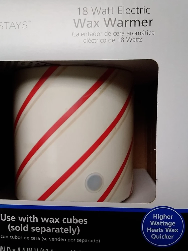 New 18 Watt Electric Wax Warmer White with Red Stripes Round 4x4x4 * 5 Inch Tall
