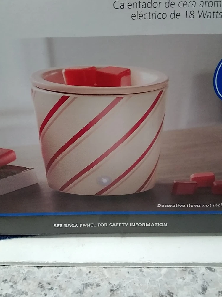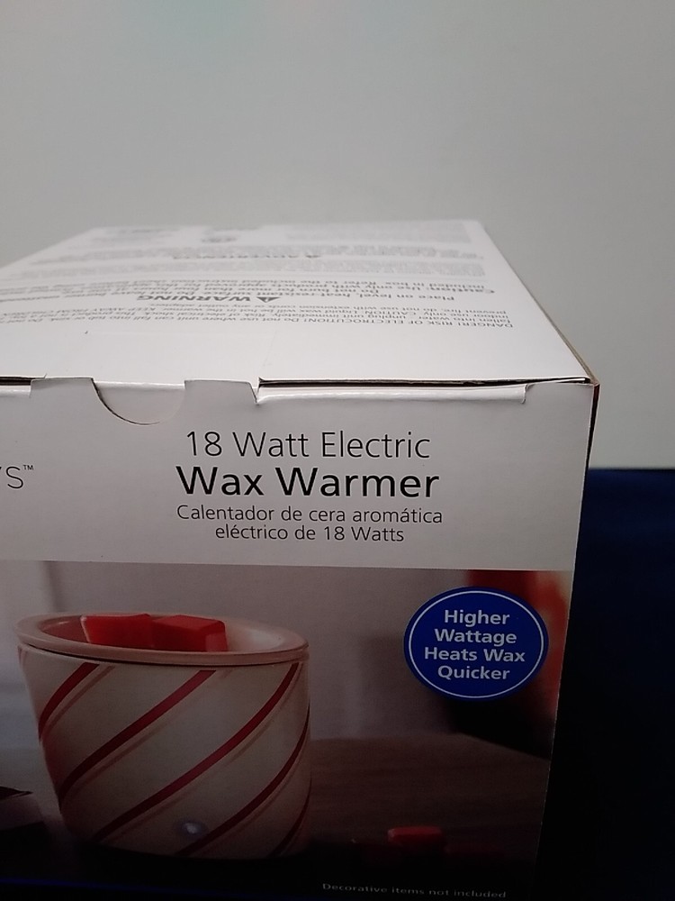 New 18 Watt Electric Wax Warmer White with Red Stripes Round 4x4x4 * 5 Inch Tall...
