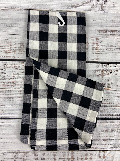 This new with tags 18 x 28 inch Cotton Christmas Towel by Design Imports will make a wonderful addition to your kitchen or a fantastic gift for the holidays. The black and white buffalo check cotton design has a square embroidered patch on the front that is white with red trim. The patch says "Farm Fresh Christmas Trees" and has a red truck containing 2 green trees. Under the truck it says "Cut & Carry" and "Complimentary Cider & Hot Cocoa." The remainder of the towel is buffalo check front and back. Very cute farmhouse or country design.