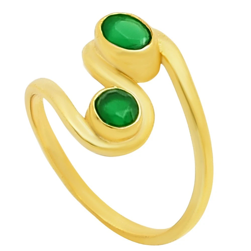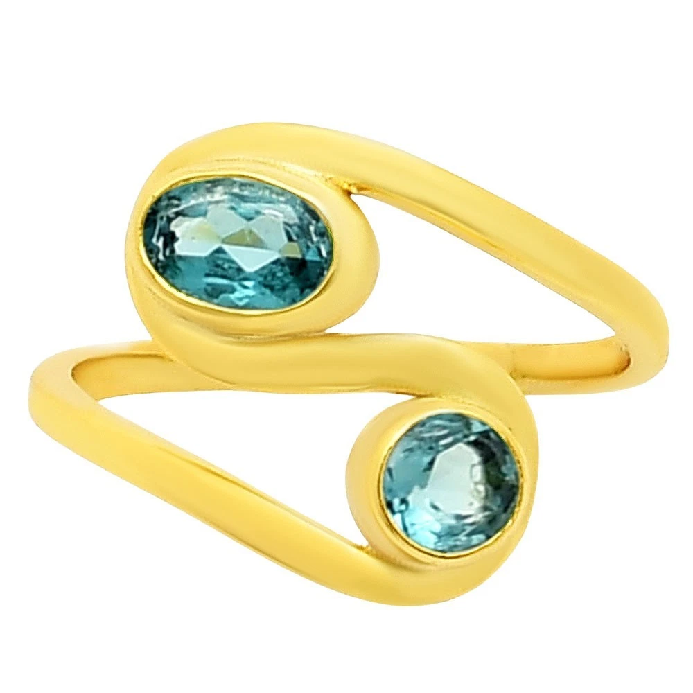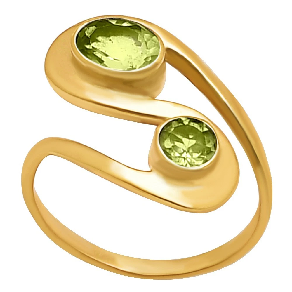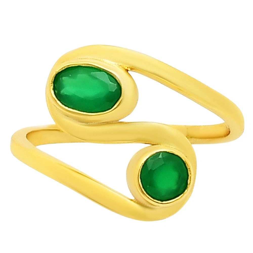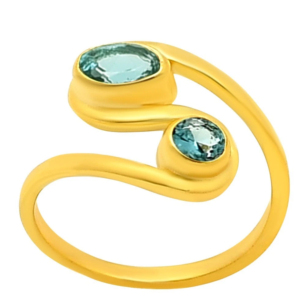 18K Gold Plated Brass Dual Colorful Gemstone Wrap Ring Fashion Jewelry TGR1007