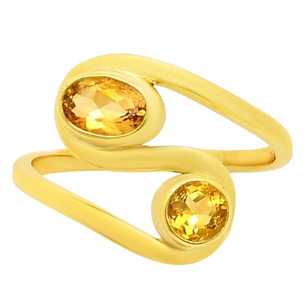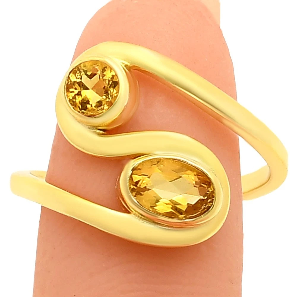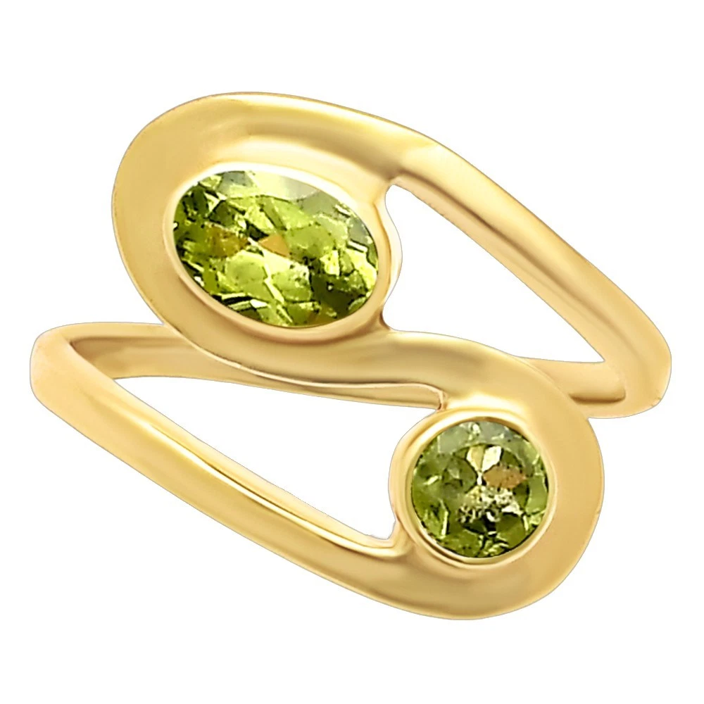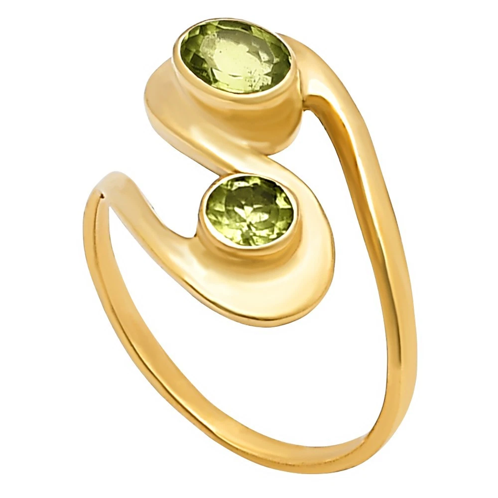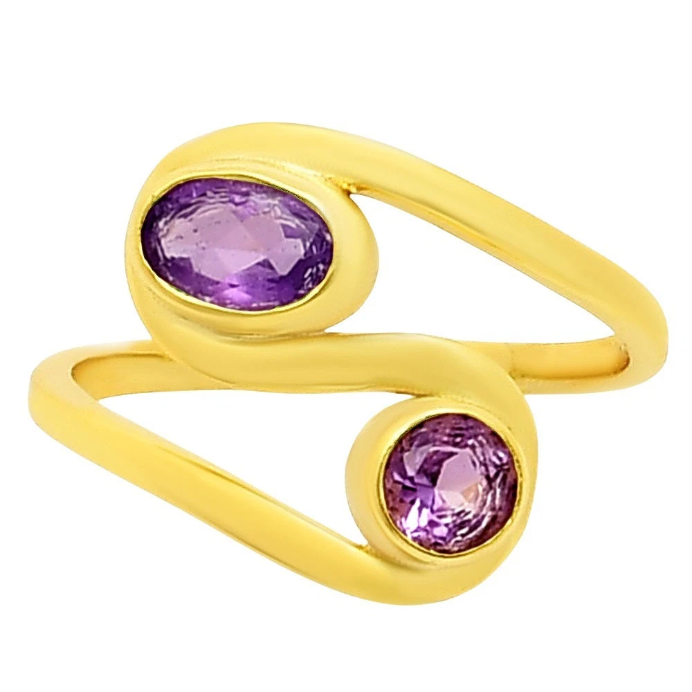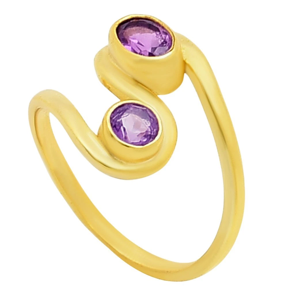 18K Gold Plated Brass Dual Colorful Gemstone Wrap Ring Fashion Jewelry TGR1007