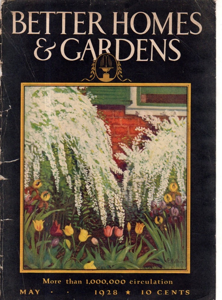 Your browser does not support JavaScript. To view this page, enable JavaScript if it is disabled or upgrade your browser. Better Homes & Gardens May 1928 Complete issue Inside: Planting the lily pool; Miss Belle Sherwin house in Cleveland O; Ad for Governor's Mansion in Columbia SC in color; color ad for home in New Rochelle NY for Johns- Manville; A garden of shade-loving plants; Asparagus and its allies; landscaping the hillside lot; Charles Kettering looks at a house; The modernized piano; Gardening on the rim of the prairie; ; Car ads. appliances, furniture and house items. Lots of features for houses of this era. If you own a house in this time period, then this is for you! Chosen Reflections/Million Magazines, Kaufman TX 75142 Over one Million Magazines in stock 1843-present. In the trade since 1976.