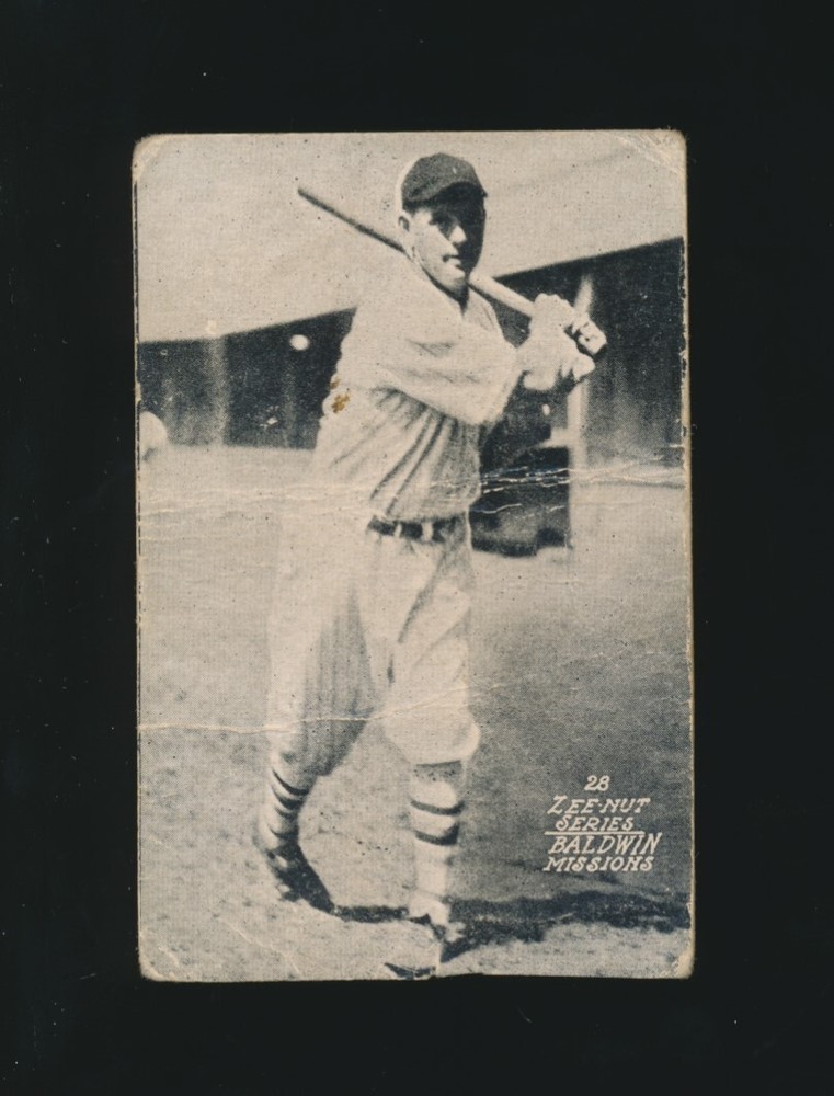 1928 Zeenut (PCL) -EARL "RED" BALDWIN (Mission Reds) PCL Mainstay 1917-1931 The Zeenut series was produced every year by the Collins Candy Co from 1911 to 1938, each set contained somewhere between 48 to nearly 200 cards and includes many players that were both future or former Major League players. The 1928 Zeenut set is a fun one to collect with several major stars that would later have HOF careers in the Major Leagues and loaded with other stars. Please see scans for condition. Please be sure to ask any questions you may have prior to purchasing. All items I sell are guaranteed authentic!