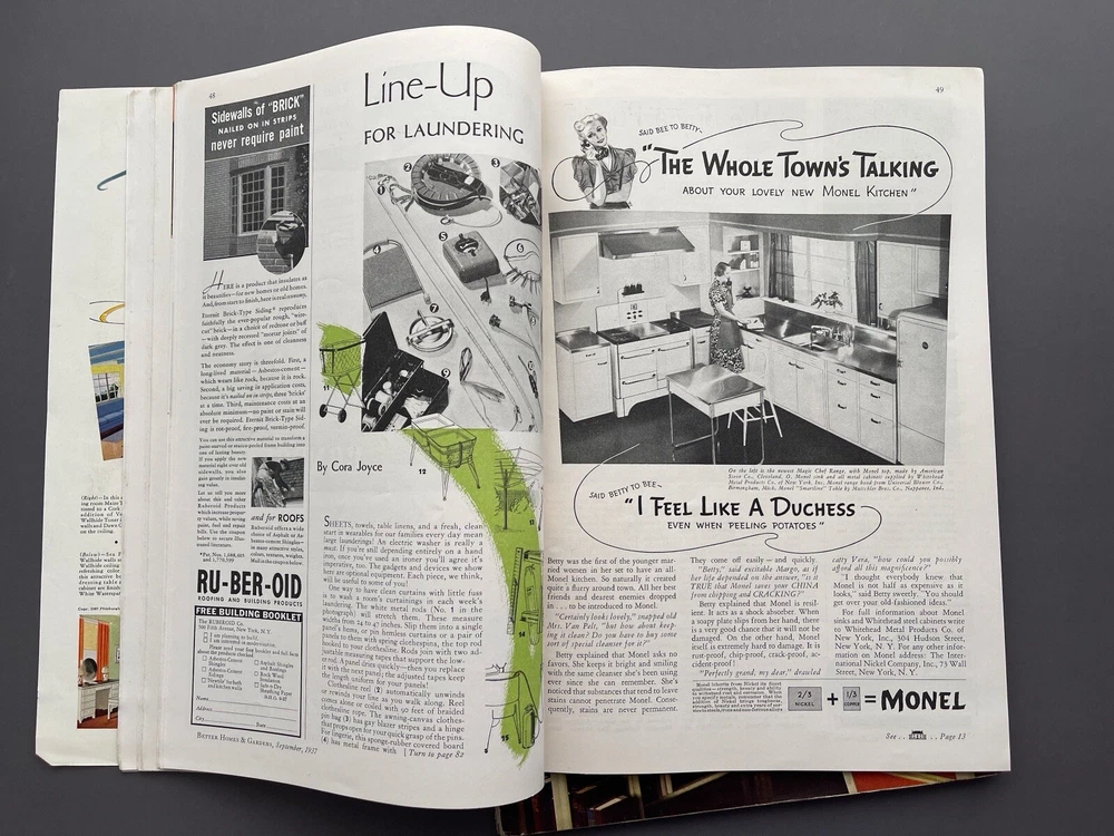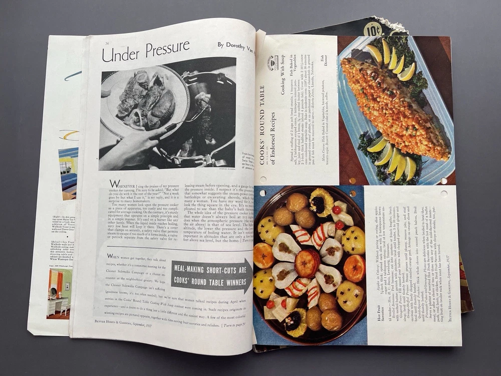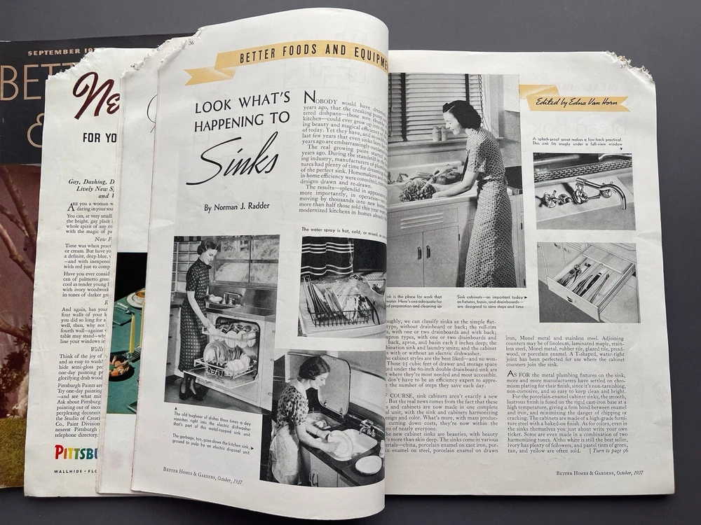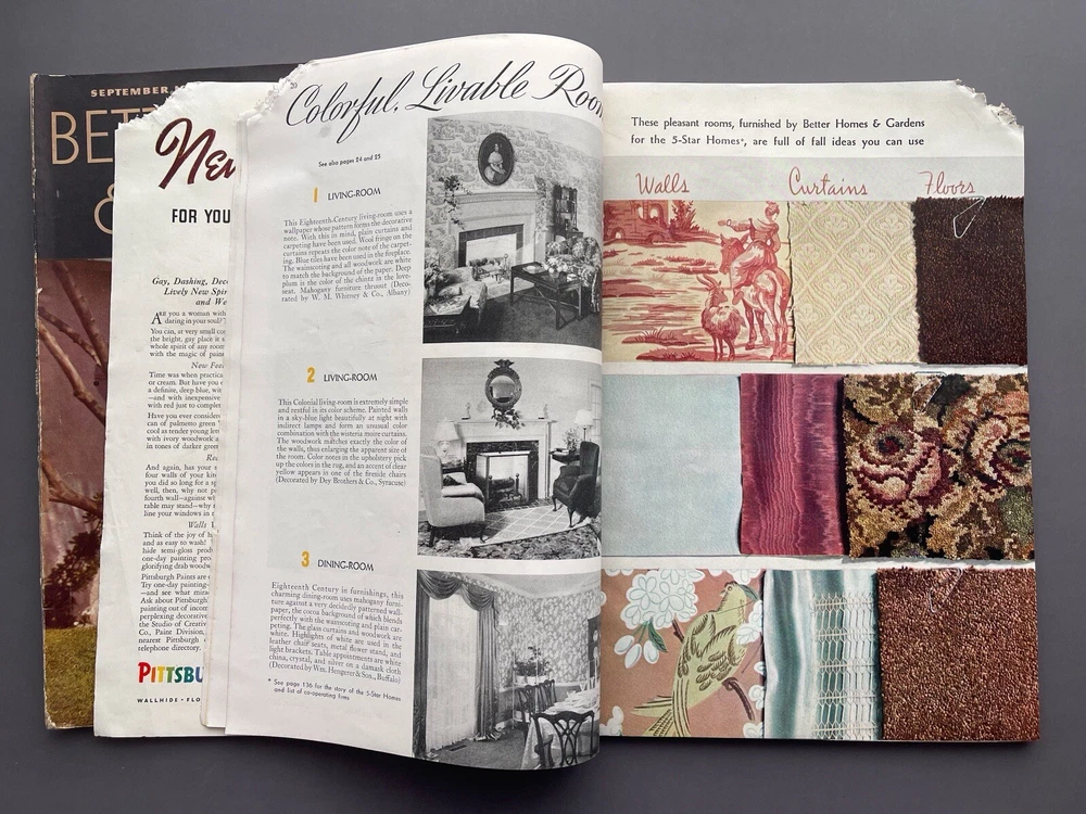 ♡ ♡ ♡ ♡ Here is a lovely lot of two 1930s vintage Better Homes and Gardens magazines for September and October 1937. Each one is filled photos, ads, articles, and all sorts of inspiration for those interested in 1930s home decorating, furniture, interior design, gardening, cooking, and more. I've included several photos for each issue to hopefully help give you a good idea as to all the interesting info these have to offer ♡ Each magazine measures approximately 12" x 8 3/8". The September issue has 110 pages, and the October issue has 166 pages. I've lowered the price because the magazines were stored in an attic where some little critter chewed off the corner of the October issue and also some of the paper covering on the spine. Other than that, the magazines are in good condition for their age with no loose or missing pages. I don't detect any bad smell or cigarette odor, but when I put my nose right up to the pages, I did get a faint whiff of fireplace smoke and printer's ink. It's pretty much imperceptible from a reading distance but worth mentioning because I only want you to be pleasantly surprised ♡ Please see photos for details, and if you have any questions, I’m always happy to help. Together, the magazines weigh a little over 1 pound, 8 ounces unpackaged. They ship via USPS and will be wrapped with care and mailed within one business day ♡