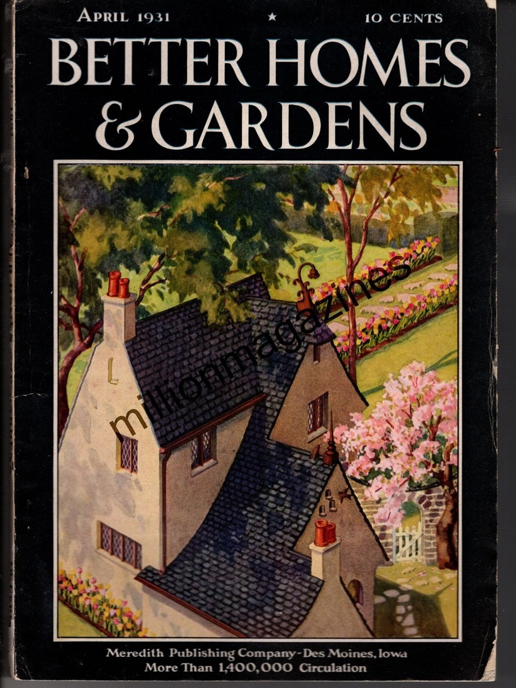 Your browser does not support JavaScript. To view this page, enable JavaScript if it is disabled or upgrade your browser. Better Homes & Gardens April, 1931 Complete issue Inside: Growing orchids; Begonia growing; Termites; Evergreens may be pruned in April; The best of the waterlilies; ; Car ads. appliances, furniture and house items. Lots of features for houses of this era. If you own a house in this time period, then this is for you! Chosen Reflections/Million Magazines, Kaufman TX 75142 Over one Million Magazines in stock 1843-present. In the trade since 1976. Like, follow and communicate with us on FB