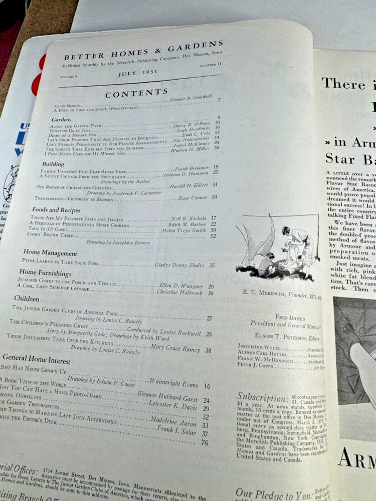 This vintage issue of Better Homes & Gardens magazine from July 1931 is a treasure trove of recipes, ads, and articles about home improvement, gardening, and more. The publication features a variety of topics related to home and garden, making it a must-have for anyone interested in the history of home décor and lifestyle. The magazine is filled with vibrant illustrations and articles written by experts in the field, providing readers with valuable insights into the latest trends and techniques in home improvement and gardening. This issue is a great addition to any collection of vintage magazines and is sure to delight collectors and enthusiasts alike.
