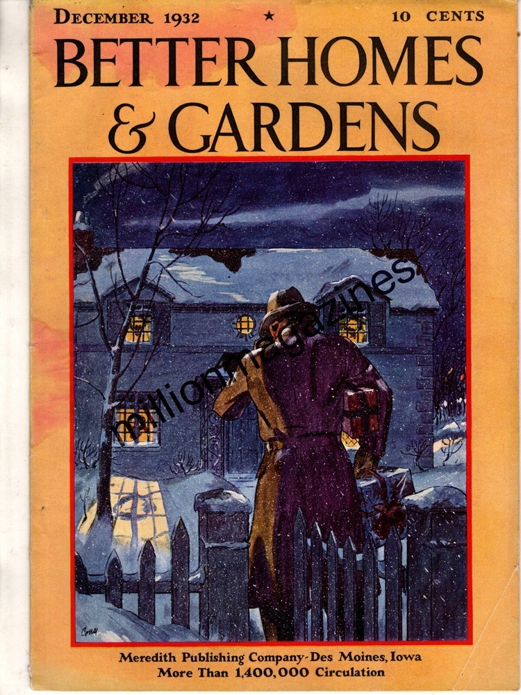 Better Homes & Gardens December 1932 Complete issue Inside: Dressing table ideas; Gifts for gardeners; The True story of Silent Night; We plan an open house Christmas; Christmas gift books; ; Features for houses of this era. If you own a house in this time period, then this is for you! Chosen Reflections/Million Magazines, Kaufman TX 75142 Over one Million Magazines in stock 1843-present. In the trade since 1976. Communicate, Like and Follow us on FB - millionmagazines Your Ebay host here is Michael Sandusky, the author of many Romance-Adventure and Historical Fiction novels. You can find him on most online booksellers.
