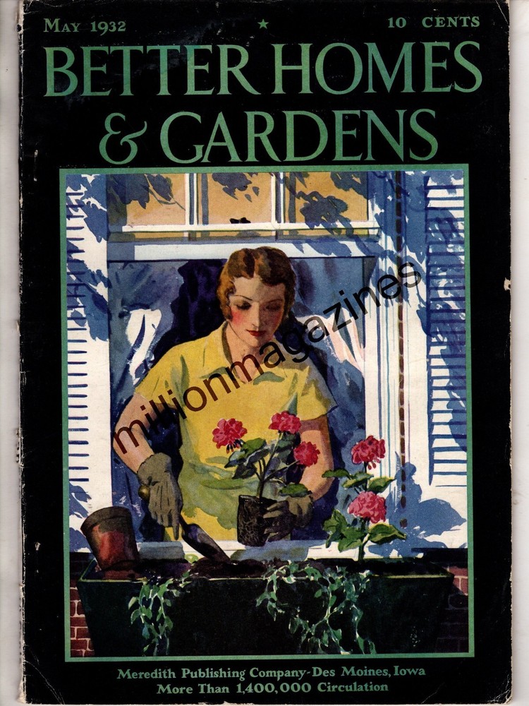 Better Homes & Gardens May 1932 Complete issue Inside: TA garden 3000 miles long; Nancy's neighborhood playground; In praise of hens and chickens; The Iris; Southport CT house; Mamaroneck Knolls NY house; four playhouses for little boys and girls; Five sunporch gardens; ; Features for houses of this era. If you own a house in this time period, then this is for you! Chosen Reflections/Million Magazines, Kaufman TX 75142 Over one Million Magazines in stock 1843-present. In the trade since 1976. Communicate, Like and Follow us on FB - millionmagazines Your Ebay host here is Michael Sandusky, the author of many Romance-Adventure and Historical Fiction novels. You can find him on most online booksellers.