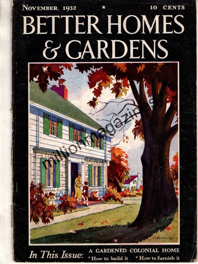 Better Homes & Gardens November 1932 Complete issue Inside: Bildcost Colonial living room; Make Thanksgiving easier for mother; Gala Christmas cards you can make; We get ready for Christmas; Begonias; 8 small lot plans that locate the garage; ; Features for houses of this era. If you own a house in this time period, then this is for you! Chosen Reflections/Million Magazines, Kaufman TX 75142 Over one Million Magazines in stock 1843-present. In the trade since 1976. Communicate, Like and Follow us on FB - millionmagazines Your Ebay host here is Michael Sandusky, the author of many Romance-Adventure and Historical Fiction novels. You can find him on most online booksellers.